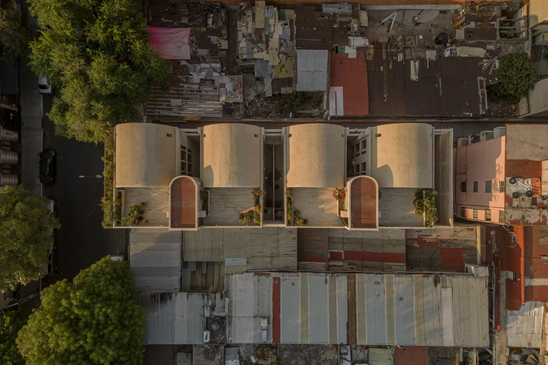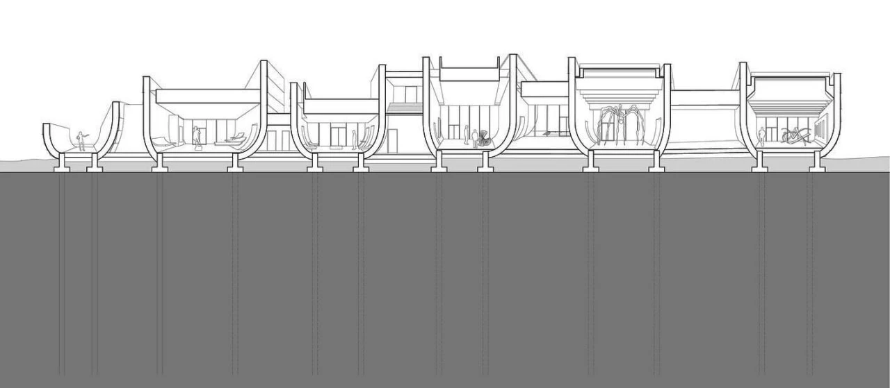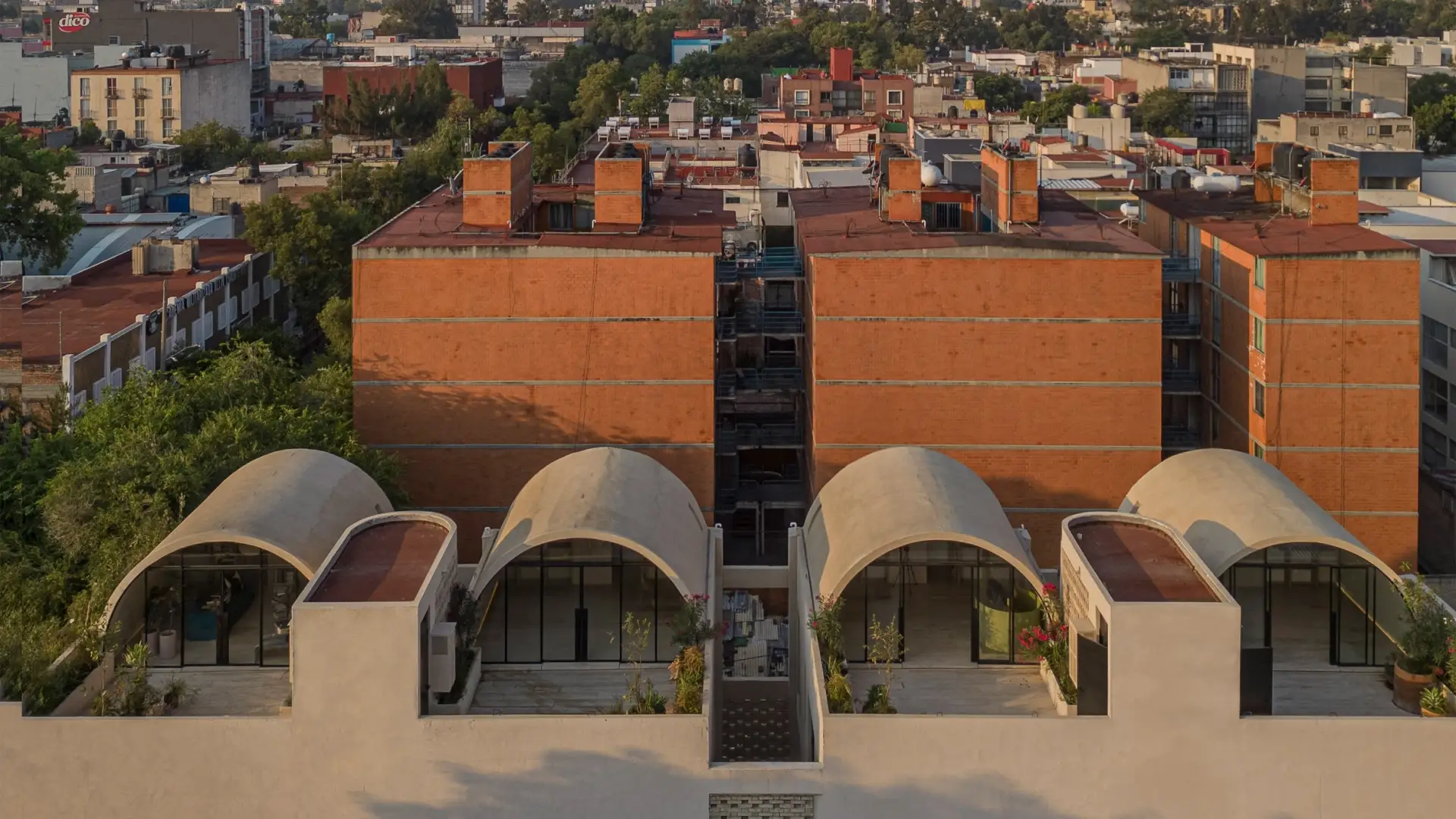 Agrosemillas Offices — это офисное здание площадью 280 м², спроектированное испанским бюро Impepinable Studio в агро-индустриальной зоне близ Мадрида. В проекте используются переоборудованные морские контейнеры, которые размещены на железобетонной конструкции и образуют «зубчатую» крышу с оконными проемами для естественного освещения. Такое решение визуально перекликается с окружающими складами, но создаёт более комфортный, светлый рабочий интерьер.