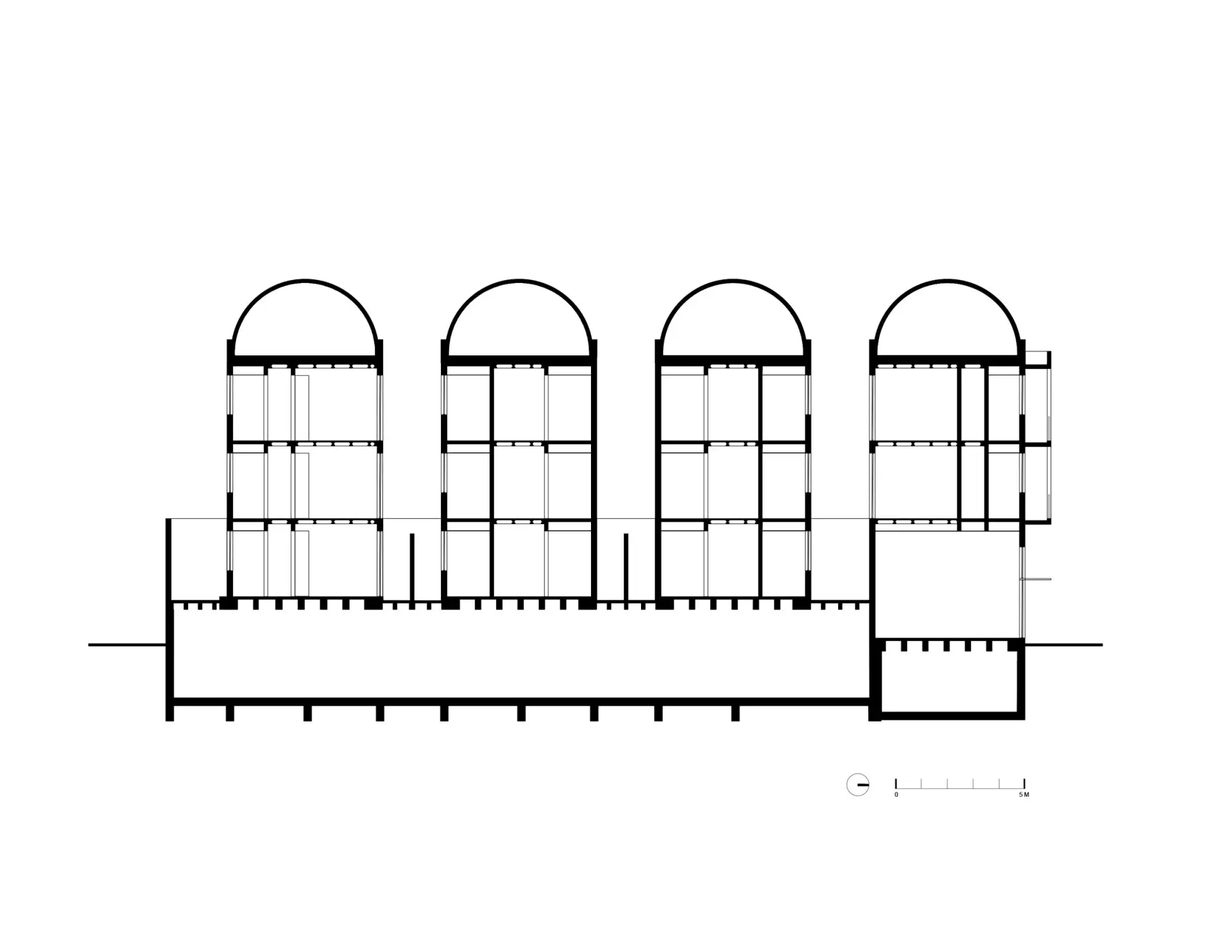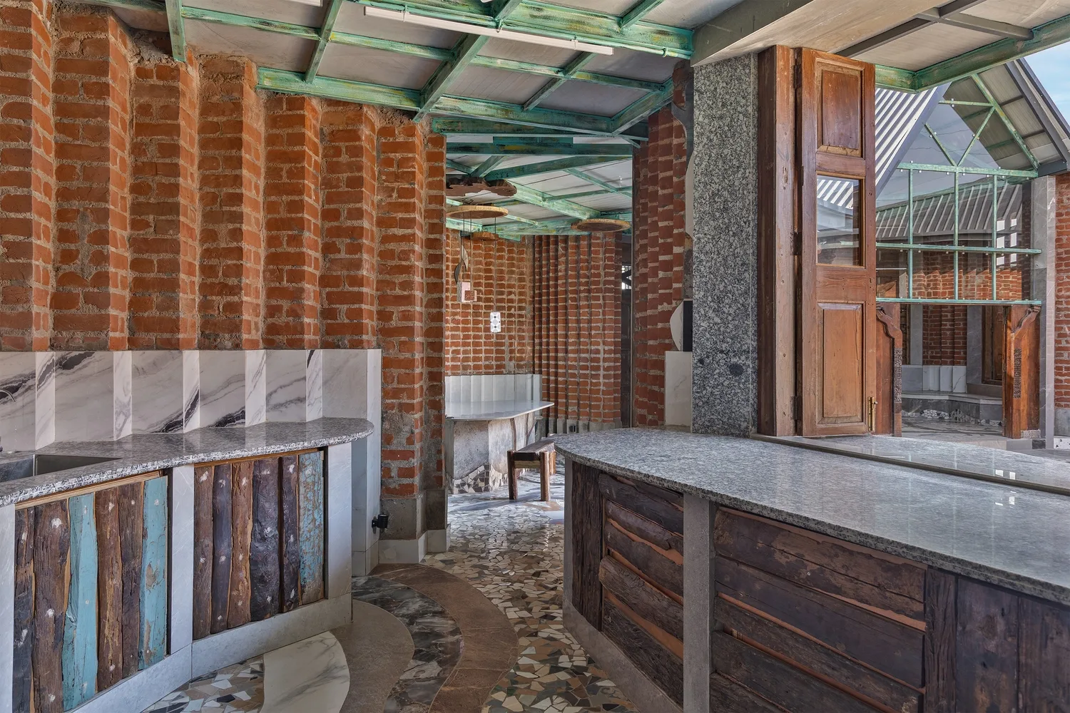 Инженерные решения ориентированы на естественную вентиляцию и инсоляцию. Система пассивного охлаждения реализована через комбинацию арочных проёмов, перфорированной кирпичной кладки, фонарей и коньковой вентиляции, обеспечивающих стабильный температурно-влажностный режим, без применения дорогостоящих инженерных систем.