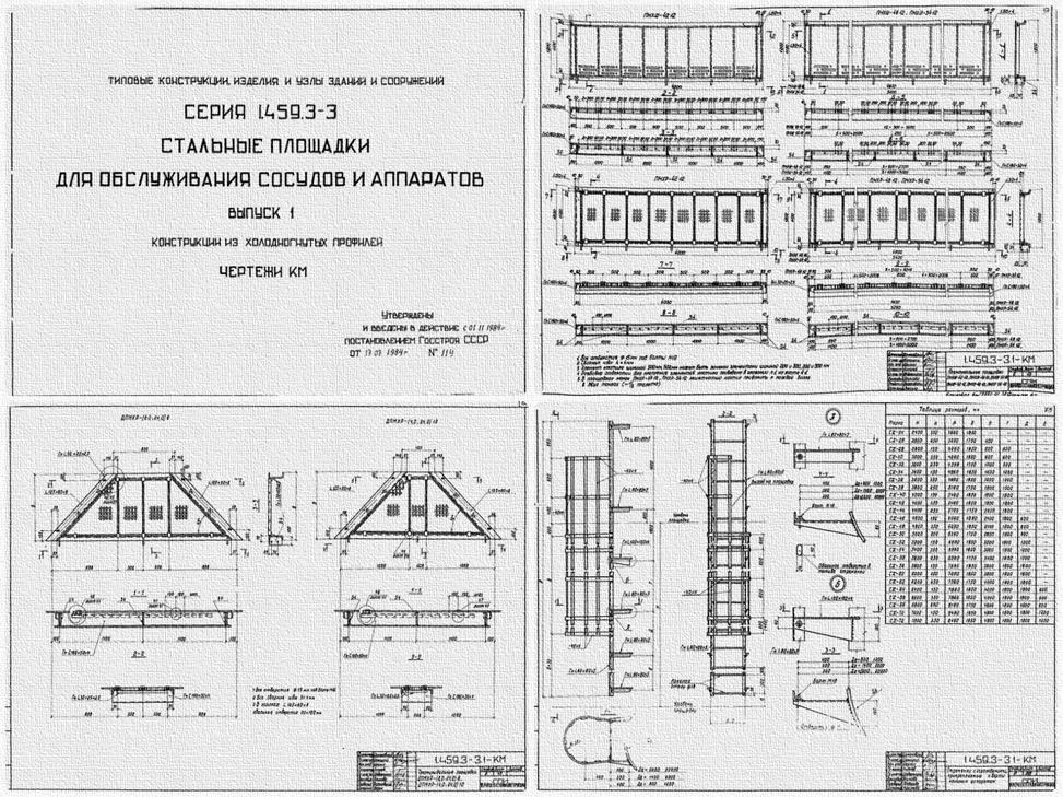 Серия 1.459.3-3. Стальные площадки для обслуживания сосудов и аппаратов