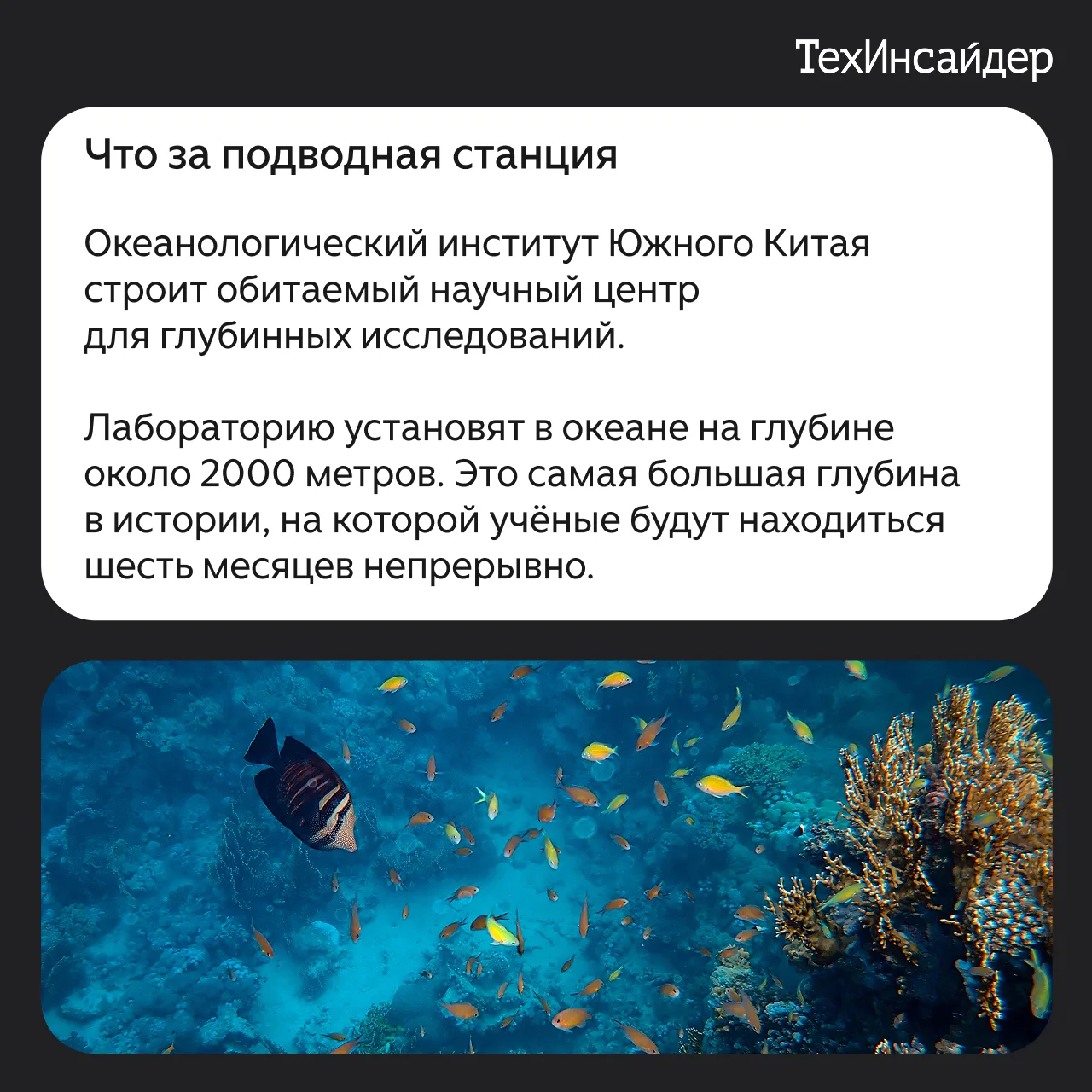 Китайские учёные решили исправить этот перекос в науке. Techinsider.ru сообщает, что исследователи разрабатывают новую подводную исследовательскую станцию, на которой учёные будут находиться непрерывно до шести месяцев.