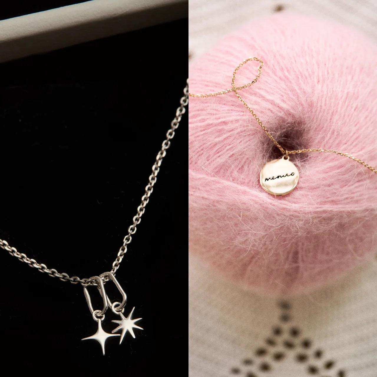Для создания дизайна мы попросили мам сотрудников Дзена и «585 Золотой» написать самые важные слова от руки — так появился общий шрифт коллекции. В набор вошли цепочка, пять кулонов и спарклы-логотипы брендов, которые можно легко сочетать между собой и менять под настроение. Украшения представлены в серебре и позолоте.