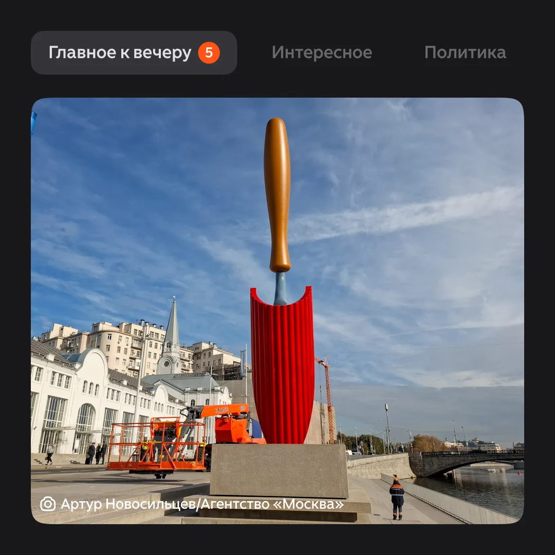 ⚫️ В Москве на месте скульптуры «Большой глины №4» поставили «Садовую лопатку».
