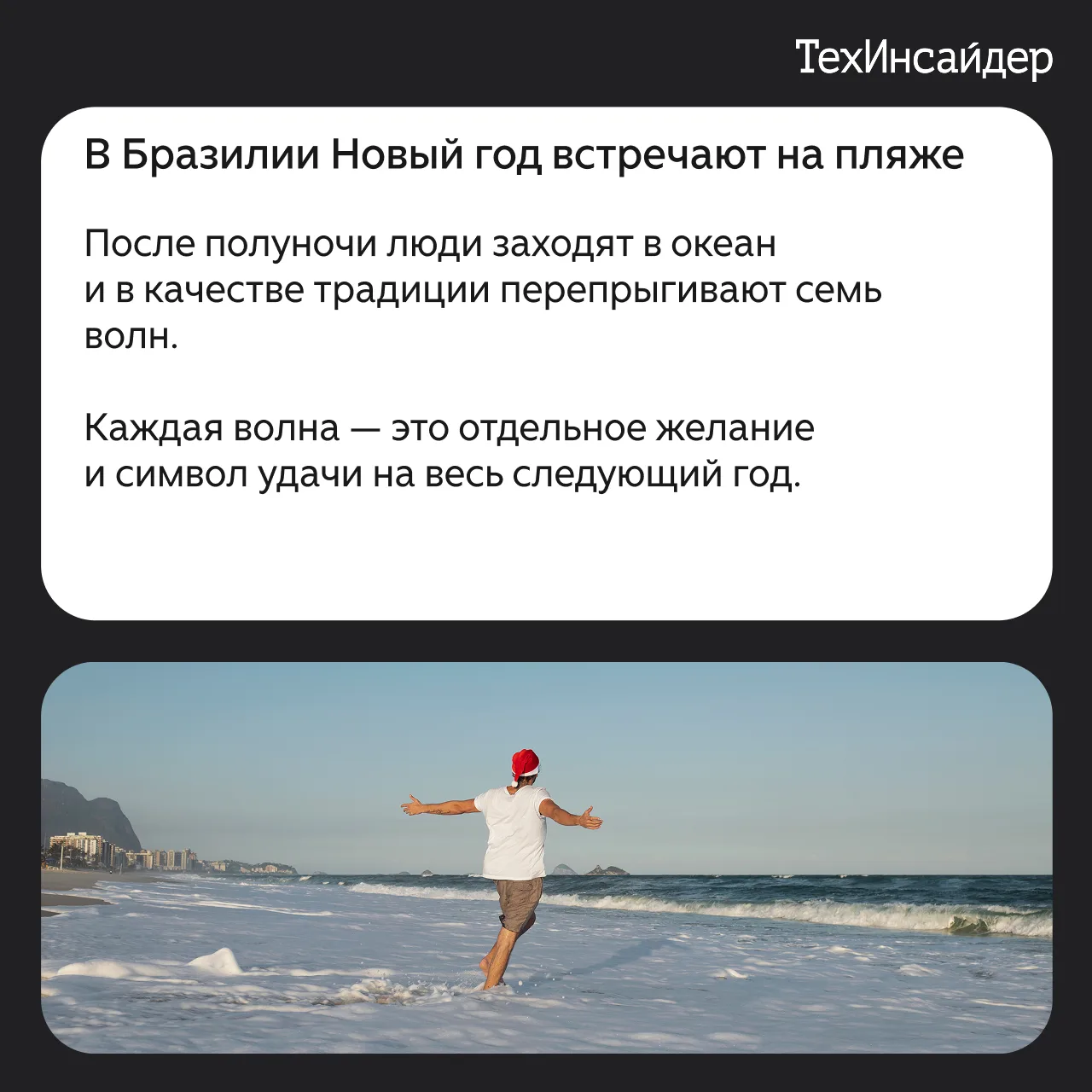 Встречать Новый год в разных странах означает не только считать до двенадцати и сжигать бумажку с желанием под бой курантов. Во всём мире существует множество необычных традиций, которые отличаются друг от друга в зависимости от культуры и менталитета. Авторы Techinsider.ru собрали для вас подборку самых необычных новогодних ритуалов. Среди них — прыжки через волны, красное бельё и поцелуи в полночь.