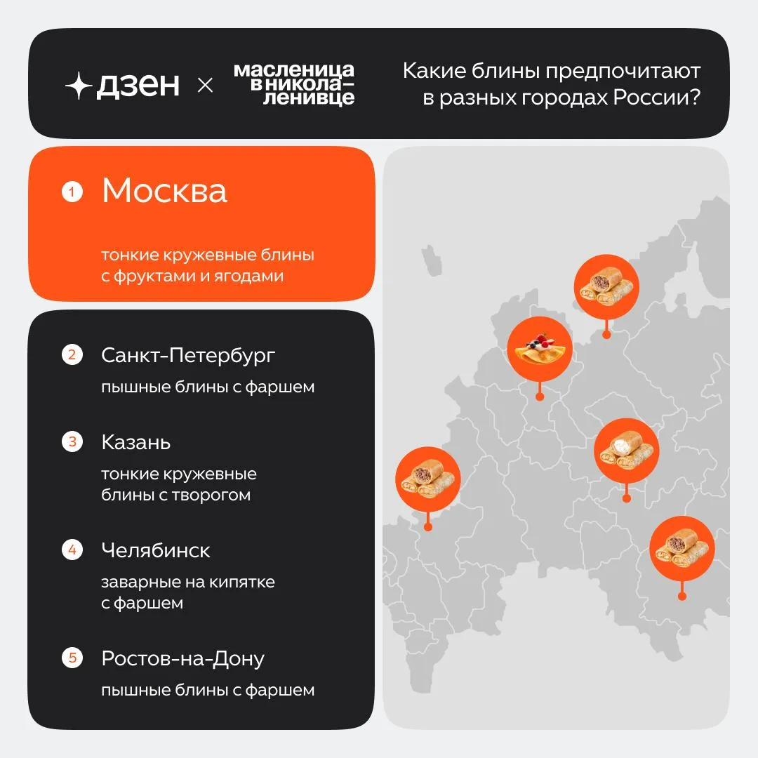 ➡ Листайте слайды, чтобы узнать больше о блинных предпочтениях в разных регионах России.