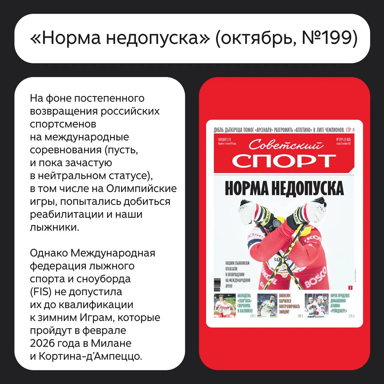 Привет, подписчики Дзена! Я Диана Валавичюте, автор «Советского спорта». Как мы уже рассказывали, 2025 год удался на славу, но следующий обещает быть ещё ярче. Нас ждут зимняя Олимпиада (с участием россиян!), чемпионат мира по футболу в обновлённом формате, масса потенциальных рекордов, громких возвращений и исторических достижений.