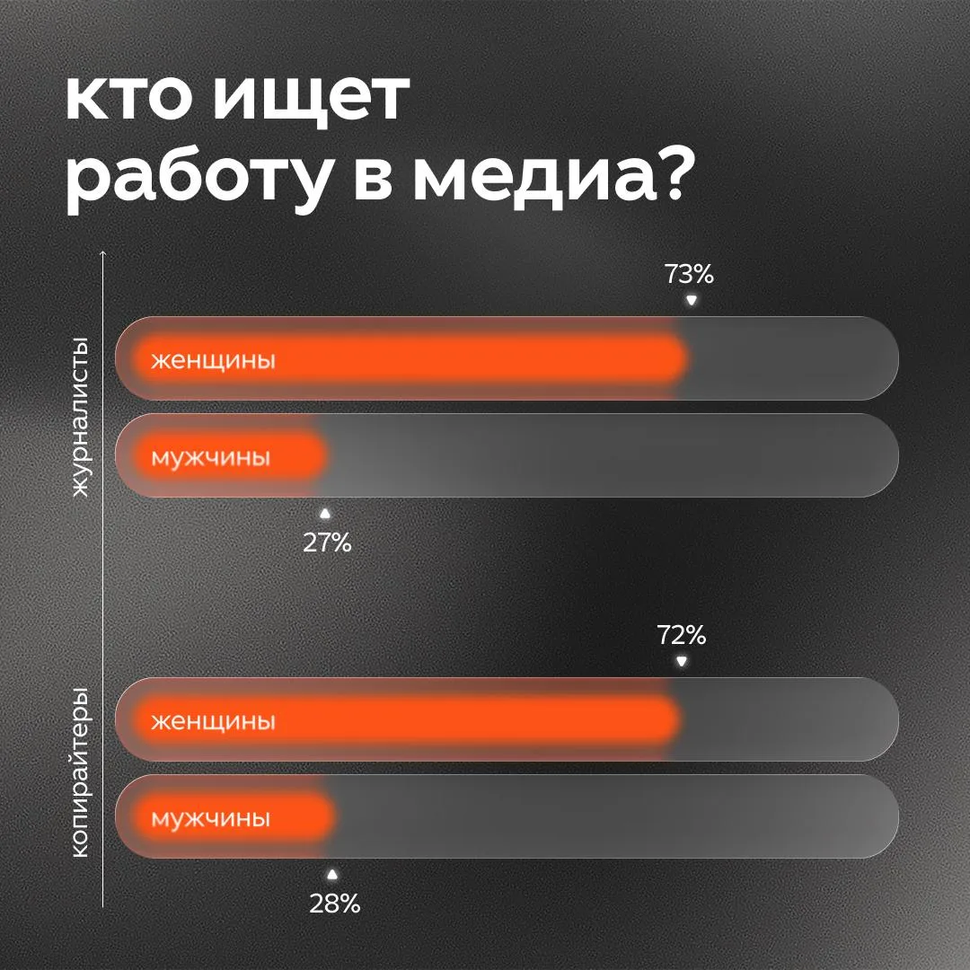 Как выяснилось, в 73% случаев резюме соискателей на вакансии для журналистов принадлежат женщинам. При этом в смежных сферах мужчины чаще ждут более высокой зарплаты. Также мы узнали: