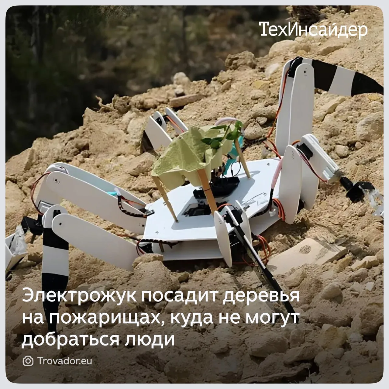 Благодаря жуку-скалолазу склоны, которые когда-то выгорели от пожаров, снова зазеленеют и зацветут. Больше об уникальной разработке читайте в расширенной статье в Дзене.