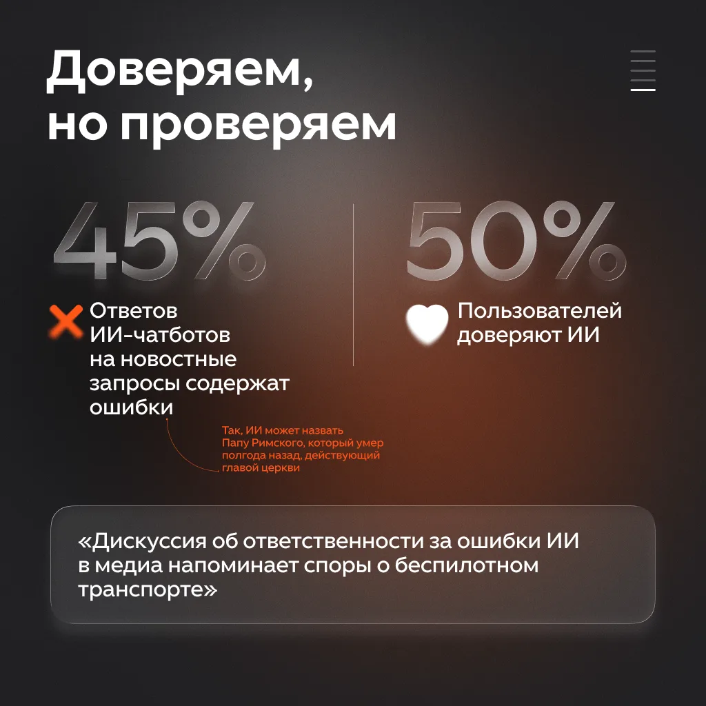 Здесь и выходит на поле искусственный интеллект. Он ищет информацию, объясняет контекст и даже подстраивает новости под читателя. Но полностью полагаться на ИИ неправильно — даже нейронка может ошибаться.