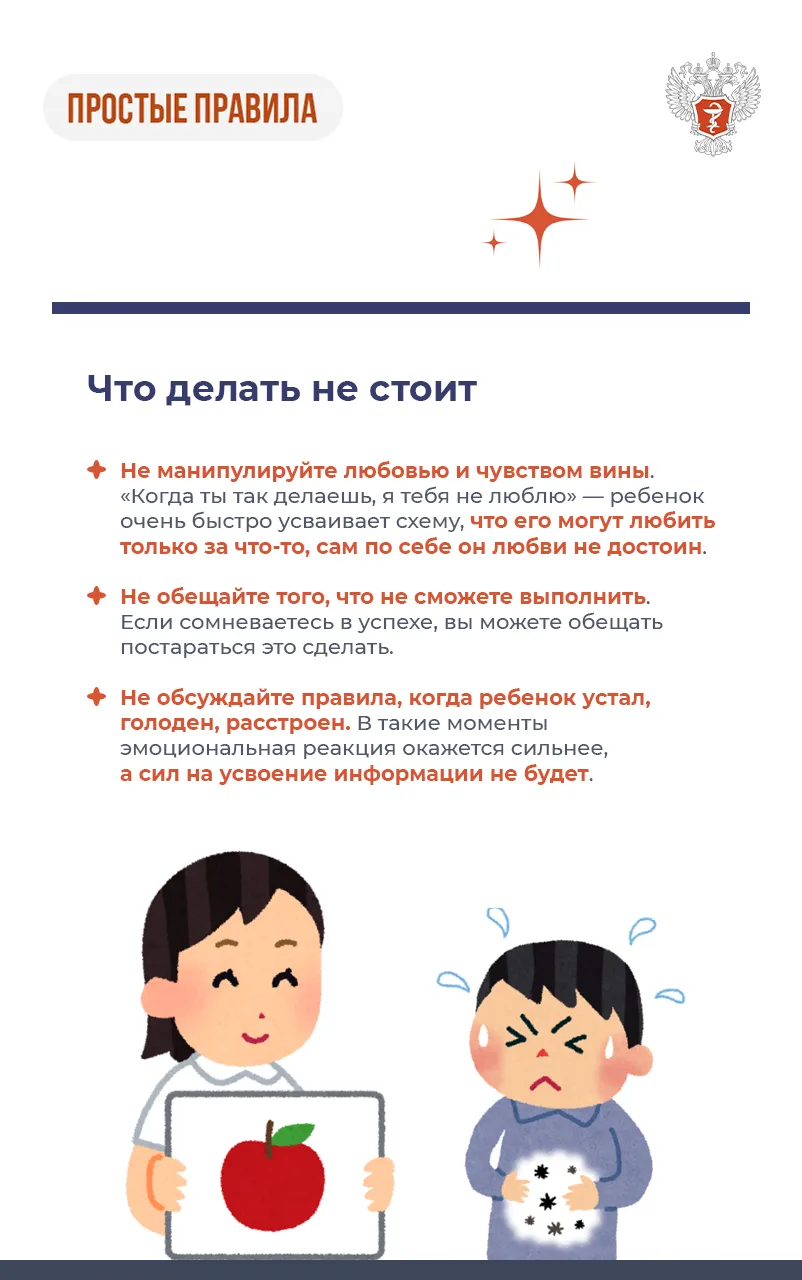 🔴 говорите четко и просто. Если правило нельзя кратко записать на бумаге, ребенок его не усвоит;