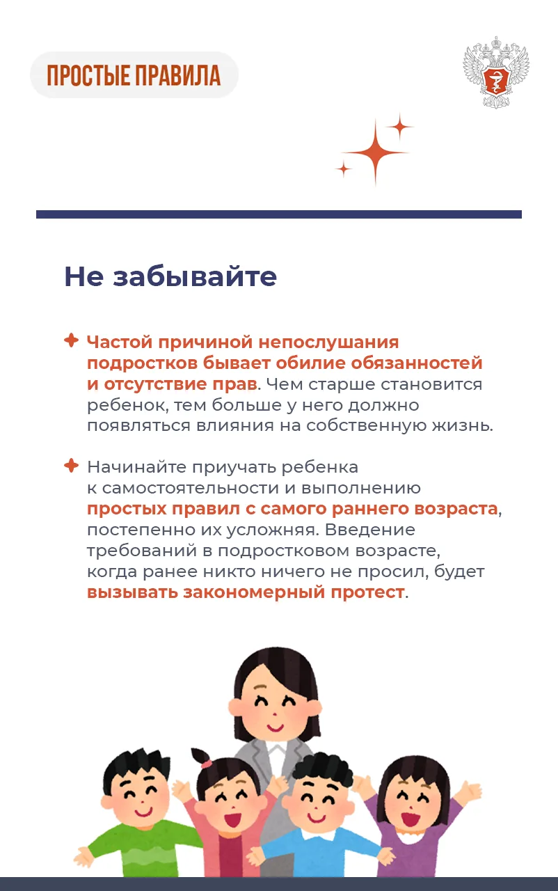 — Начинать введение требований в подростковом возрасте, когда ранее никто ничего не просил, будет вызывать закономерный протест. Своевременное и грамотное выстраивание общения поможет сохранить доверительные и теплые отношения на долгие годы, — подчеркнула эксперт.
