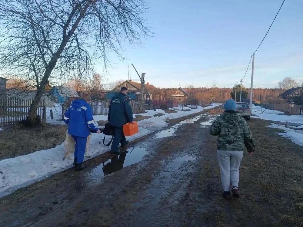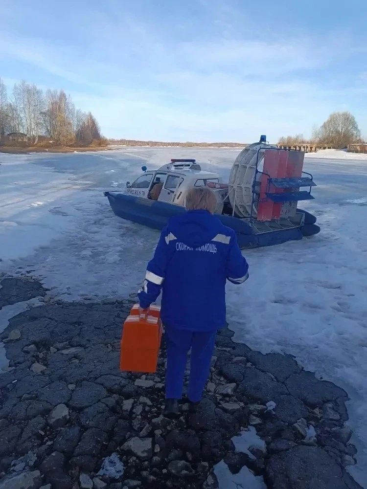Из-за удалённого и сложного месторасположения медики сами добраться до пациентки не могли. На помощь пришли сотрудники МЧС. По воде они на судне на воздушной подушке доставили бригаду скорой максимально близко к деревне, остальную часть пути врачи проделали сами пешком.