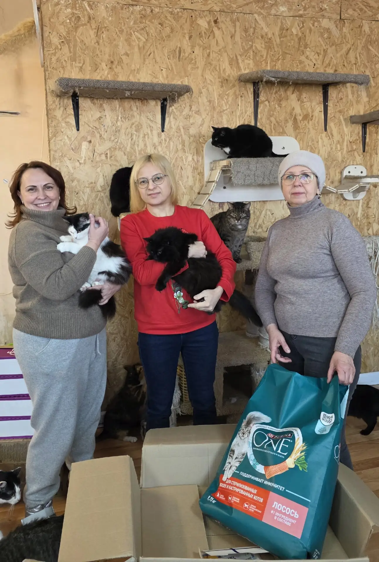 🐕 Привезли всю собранную помощь прямо в приют. Здесь нас радостно встречали очаровательные животные — улыбающиеся пёсик, ласковые коты и кошки... Они сразу почувствовали нашу заботу и тепло.