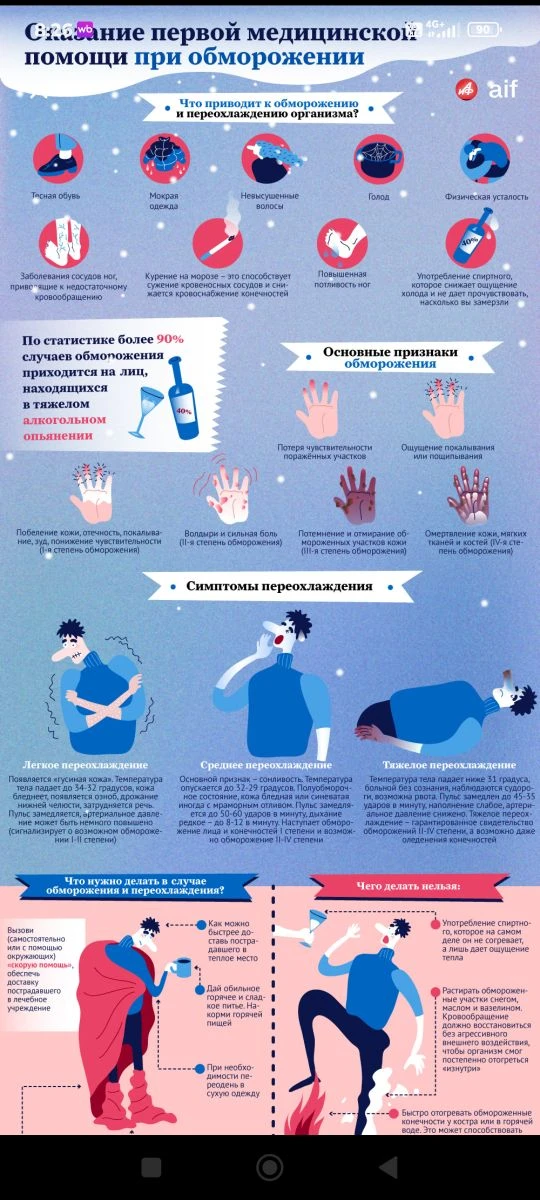 Алкоголь создаёт ощущение тепла, а на самом деле — снижает защиту организма и повышает риск обморожения.