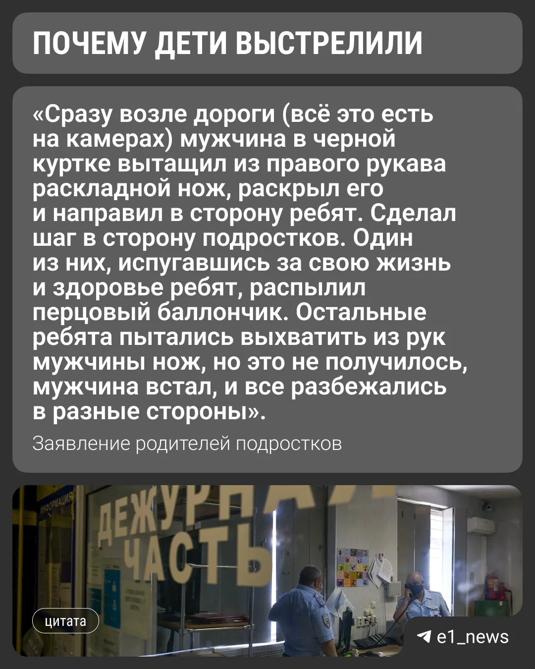 18-летний парень и трое подростков покалечили екатеринбуржца из-за мелкого конфликта. 41-летний Евгений сделал замечание подросткам из-за их поведения, за что ему залили лицо перцовкой, а потом выстрелили стартовым пистолетом.