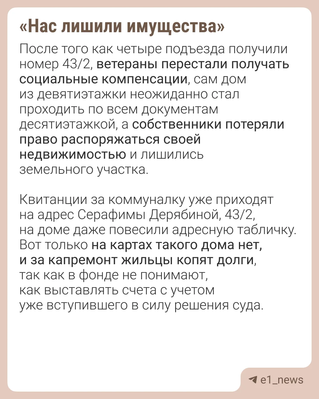 Жильцы девятиэтажки на Серафимы Дерябиной внезапно потеряли права на свои квартиры. Оказалось, что половина дома получила другой адрес, а количество этажей в их доме выросло до десяти.