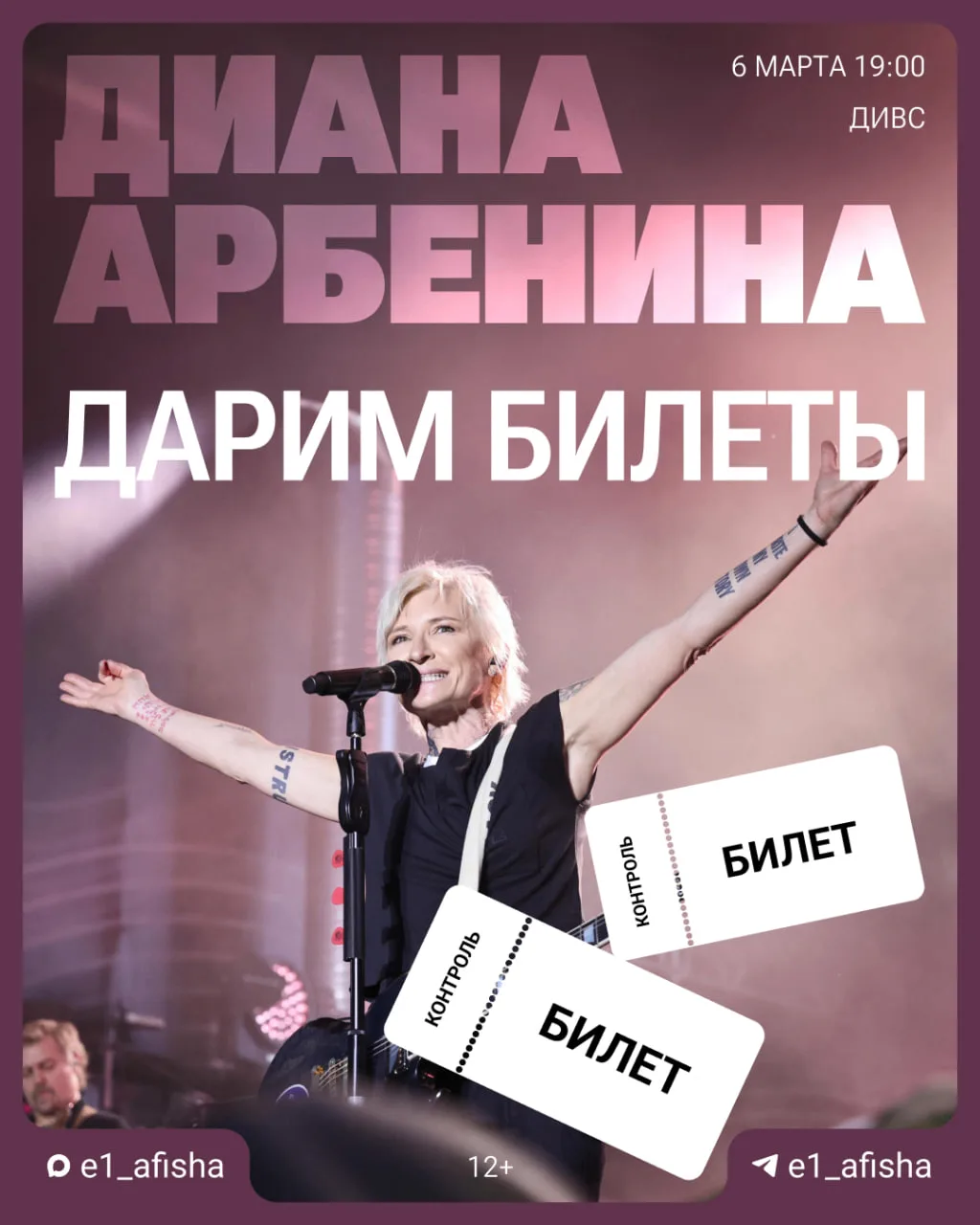 Итоги подведет бот в тг-канале @e1_afisha 26 февраля. Будет один победитель — ему улетит пара билетов. Подписку на МАХ проверим.