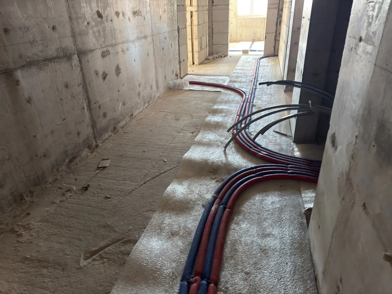 На сегодняшний день подрядная организация завершила все общестроительные работы, а также кладку межкомнатных перегородок на всех этажах строящегося комплекса. Параллельно ведется монтаж инженерных систем: работы по устройству систем водоснабжения и водоотведения в трех корпусах выполнены на 75%, а на данный момент производится монтаж электросетей. Кроме того, к зданию уже подведены наружные сети водопровода, канализации и теплоснабжения.