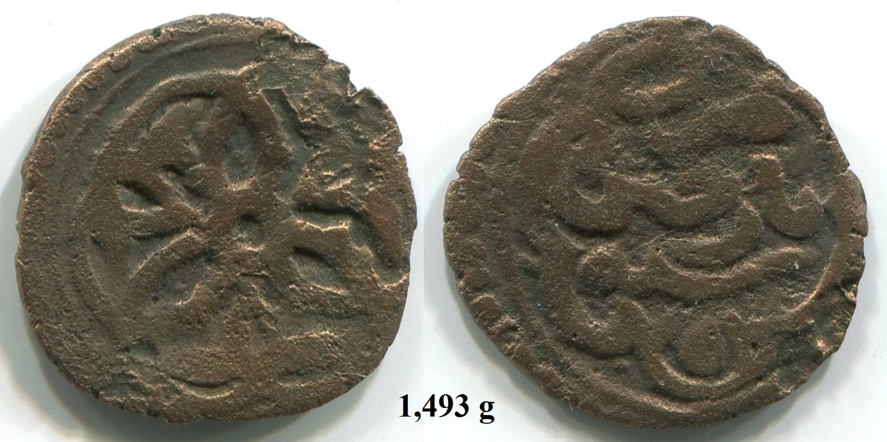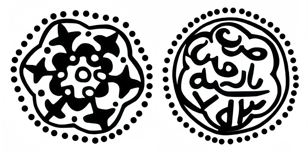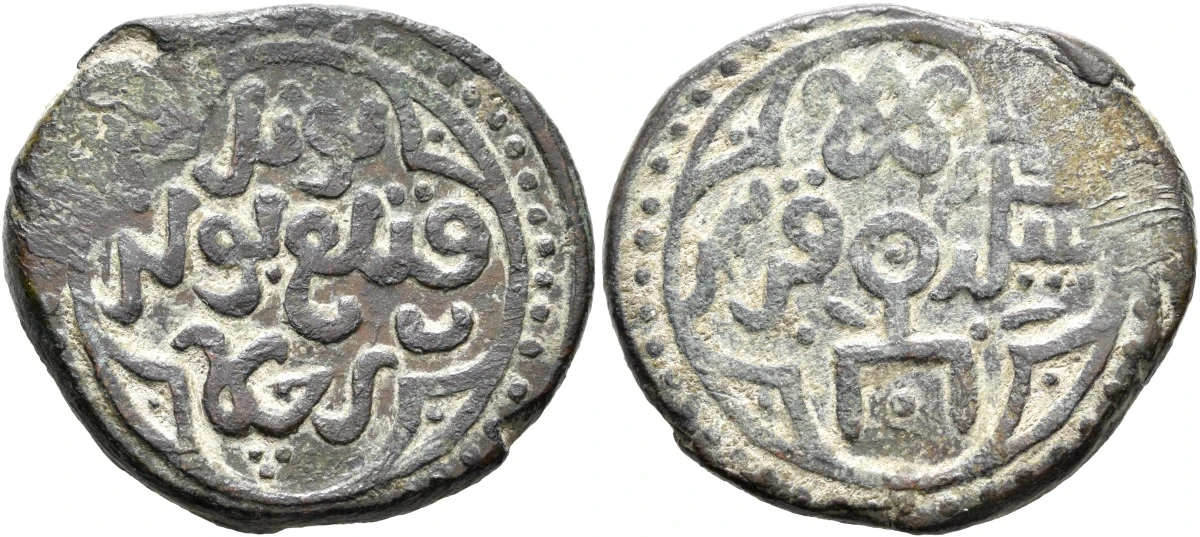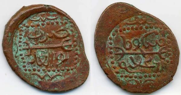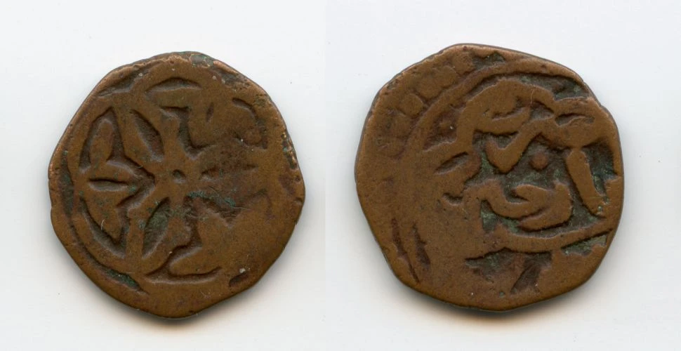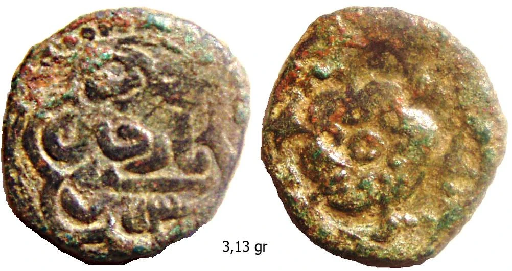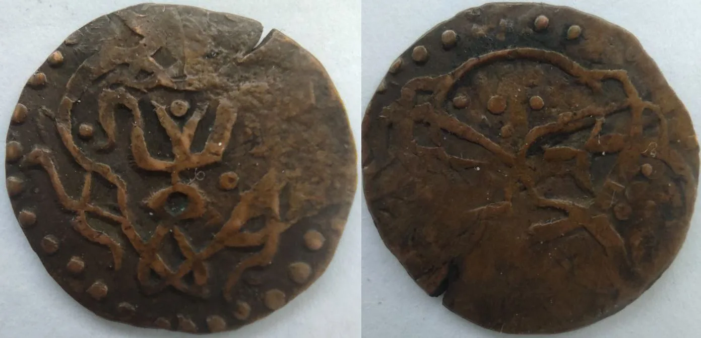 Сегодня рассмотрим пулы с растительными орнаментами: трилистник и цветочную розетку с указанными датами 753 года хиджры. Вроде бы все просто, но существуют проблемы с чтением легенды реверса, а именно с названием монетного двора. Из-за отсутствия диакритических точек на большинстве монет возможны разные варианты прочтения: "(Б/Т/Н)а(з/р)(дж/х/ч)ин". Основная версии чтения - Базджин, так как на некоторых штемпелях присутствует точка над 3-й буквой (рис.5. Но, уверенности в том, что это именно диакритическая точка, а не украшение штемпеля, нет).