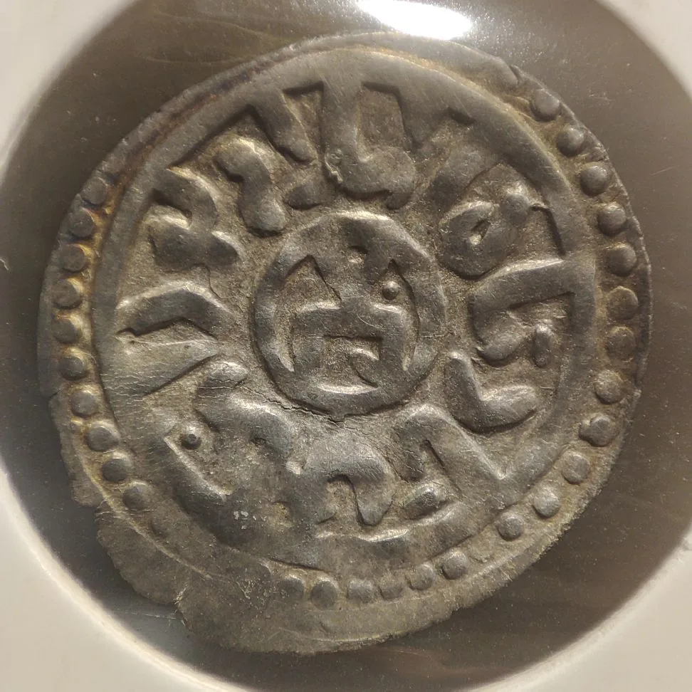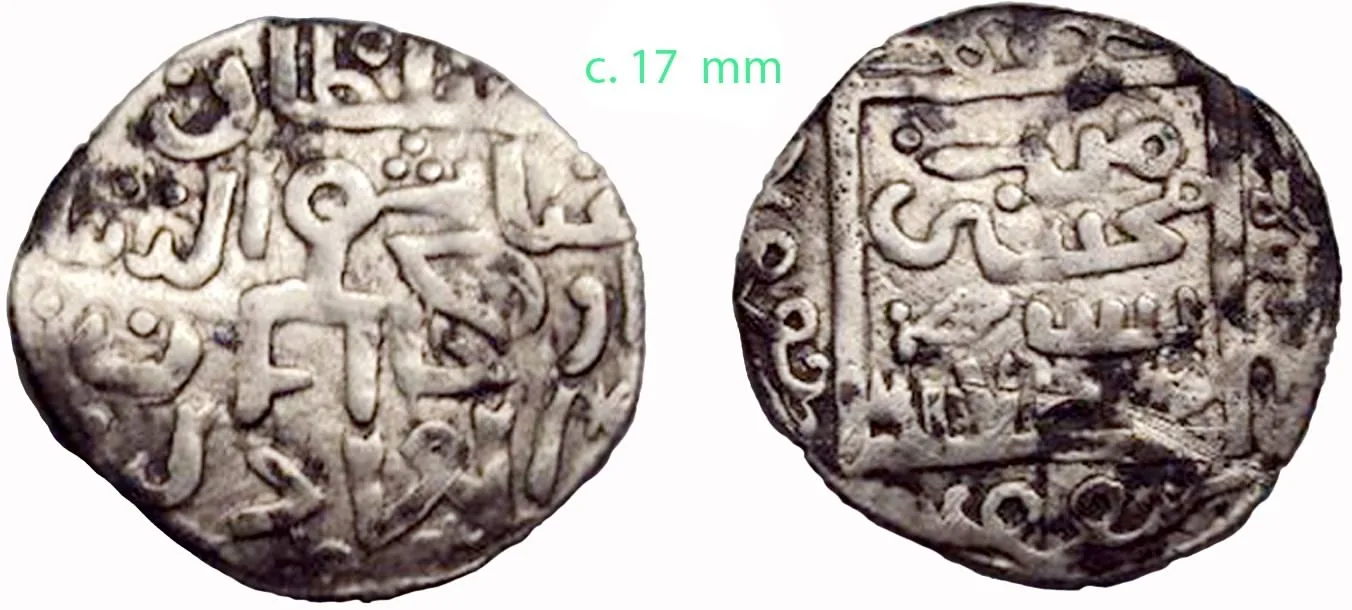 Впервые изображение этого типа из собрания Эрмитажа опубликовал Н. П. Лихачёв (1930: 107, рис. 85: с). Он же привёл датировку монеты по А. К. Маркову — 725 г. х., для чего нужно опустить первые две цифры четырехзначного числа, а кружок счесть за цифру 5 (Марков 1896: № 96). В наше время этот данг в 2002 г. опубликовал С. В. Гумаюнов, а в 2005 г. — Т. Майер. Последний также опустил первые две цифры, а кружок принял за ноль, получив таким образом дату 720 г. х.