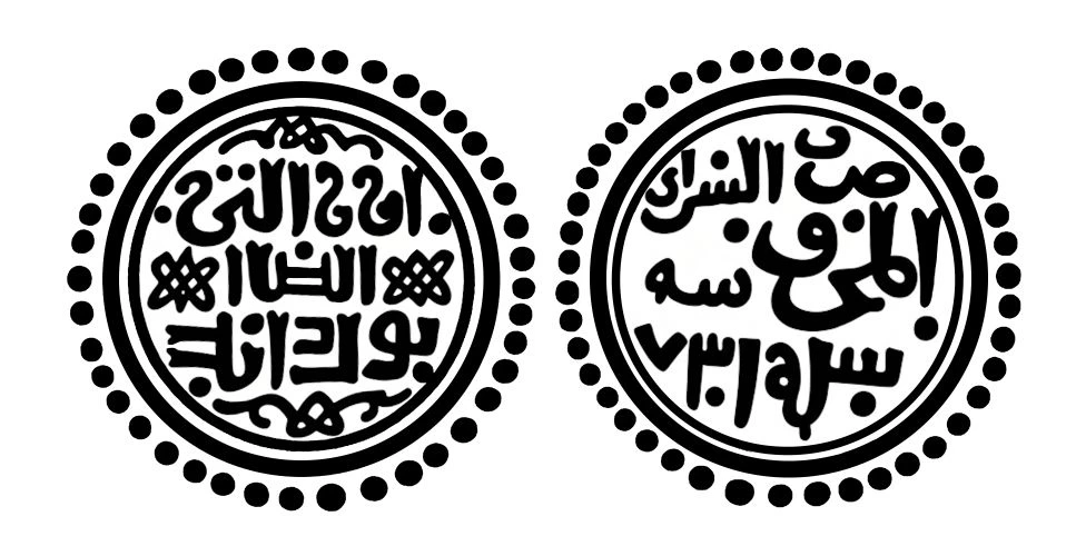 На реверсе легенда в три строки: "Чекан ас-Сарай ал-Махруса году 731".