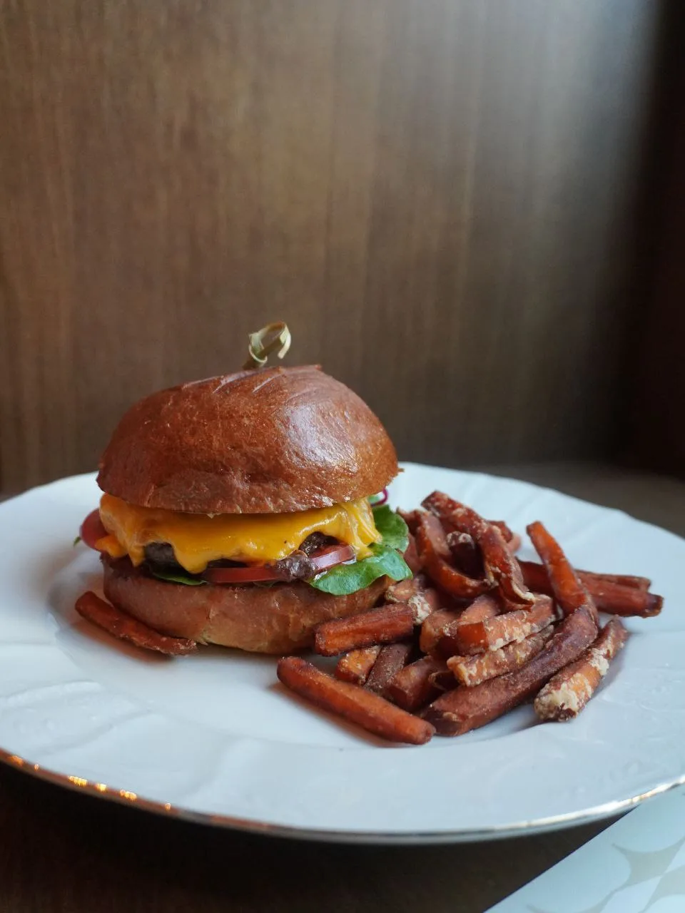 В ресторане европейкой кухни Аркадия Новикова подают: Батат-фри с ореховым соусом, Карпаччо из цветной капусты, Шницель из баклажана с пряным овощным салатом, Фалафель из чечевицы с хумусом и айоли, а также пирожные Малина и Нуар.