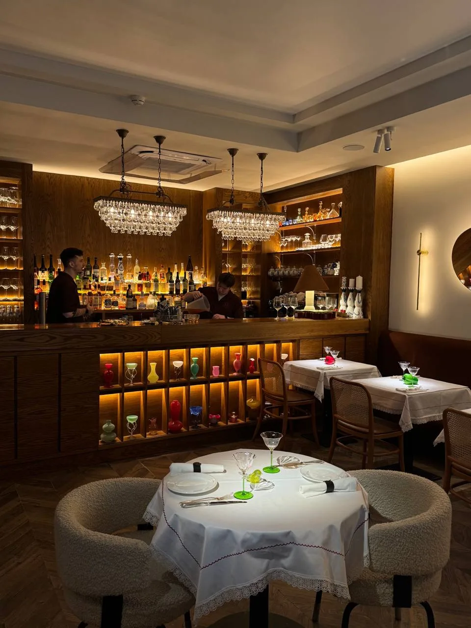 мнение: место не про шумные компании, а про атмосферу: камерную, замедленную, романтичную. Здесь легко обсуждать вино с персоналом — могут подсказать даже позиции вне карты, а перед подачей всегда дают попробовать выбранное вино.