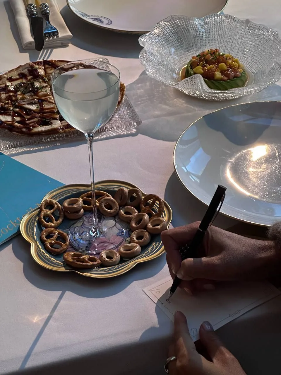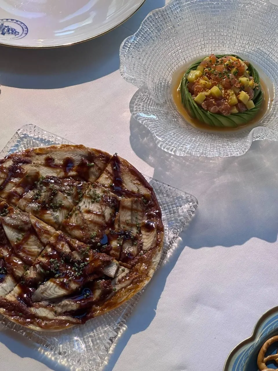 Ресторан про рыбу и морепродукты. Круассан с крабом (650 ₽), Тартар из тунца (550 ₽).