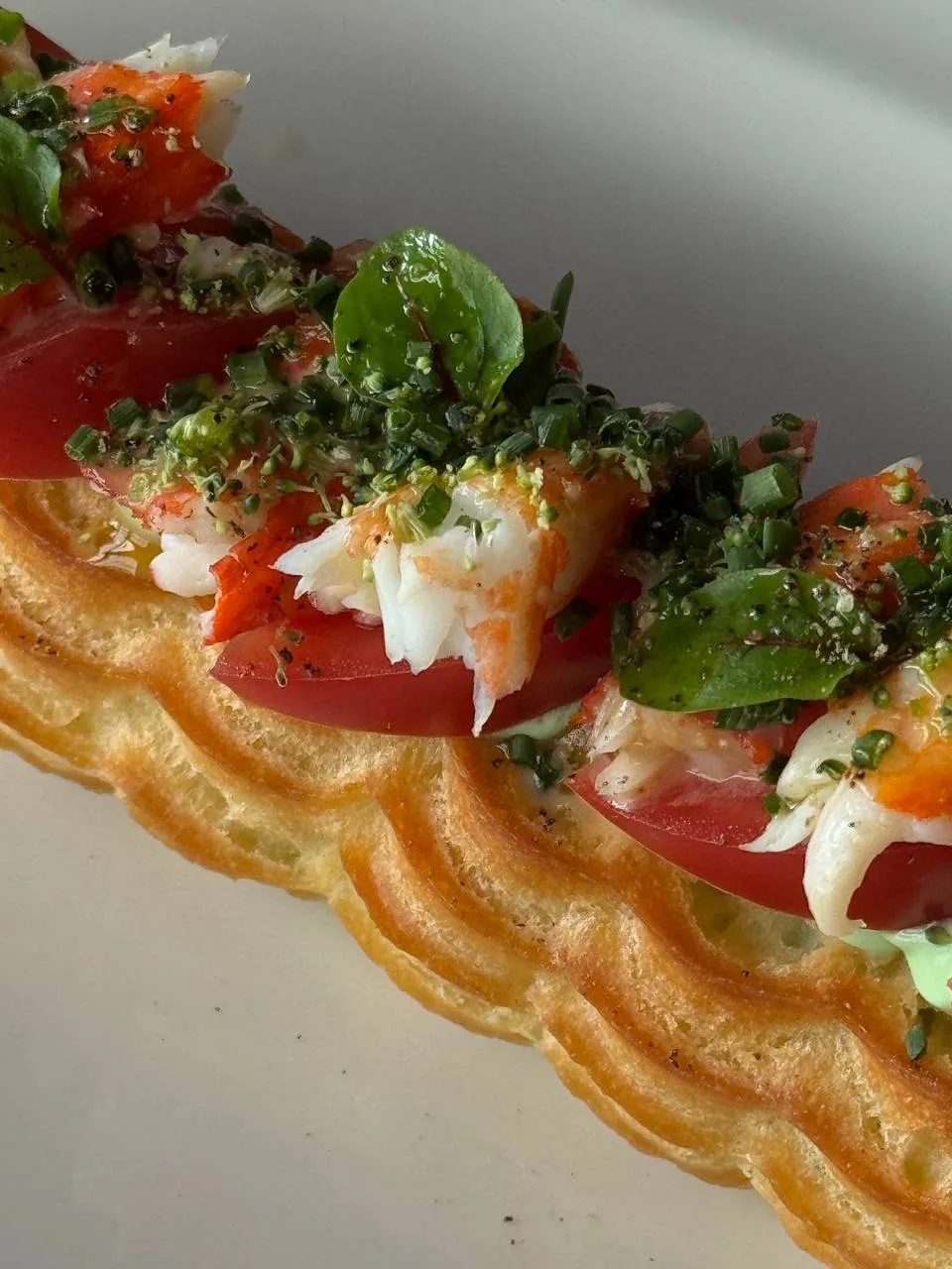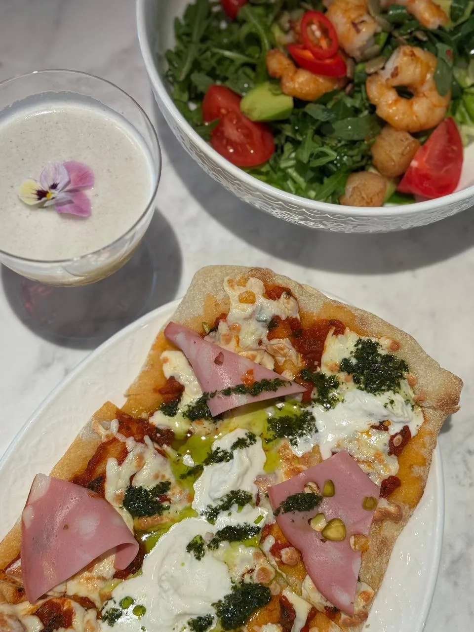 🥗 Салат с северными креветками, кремом из авокадо, томатами и свежим хреном (2200 ₽) — заправлен кремом из авокадо, что делает его еще более сбалансированным и диетическим