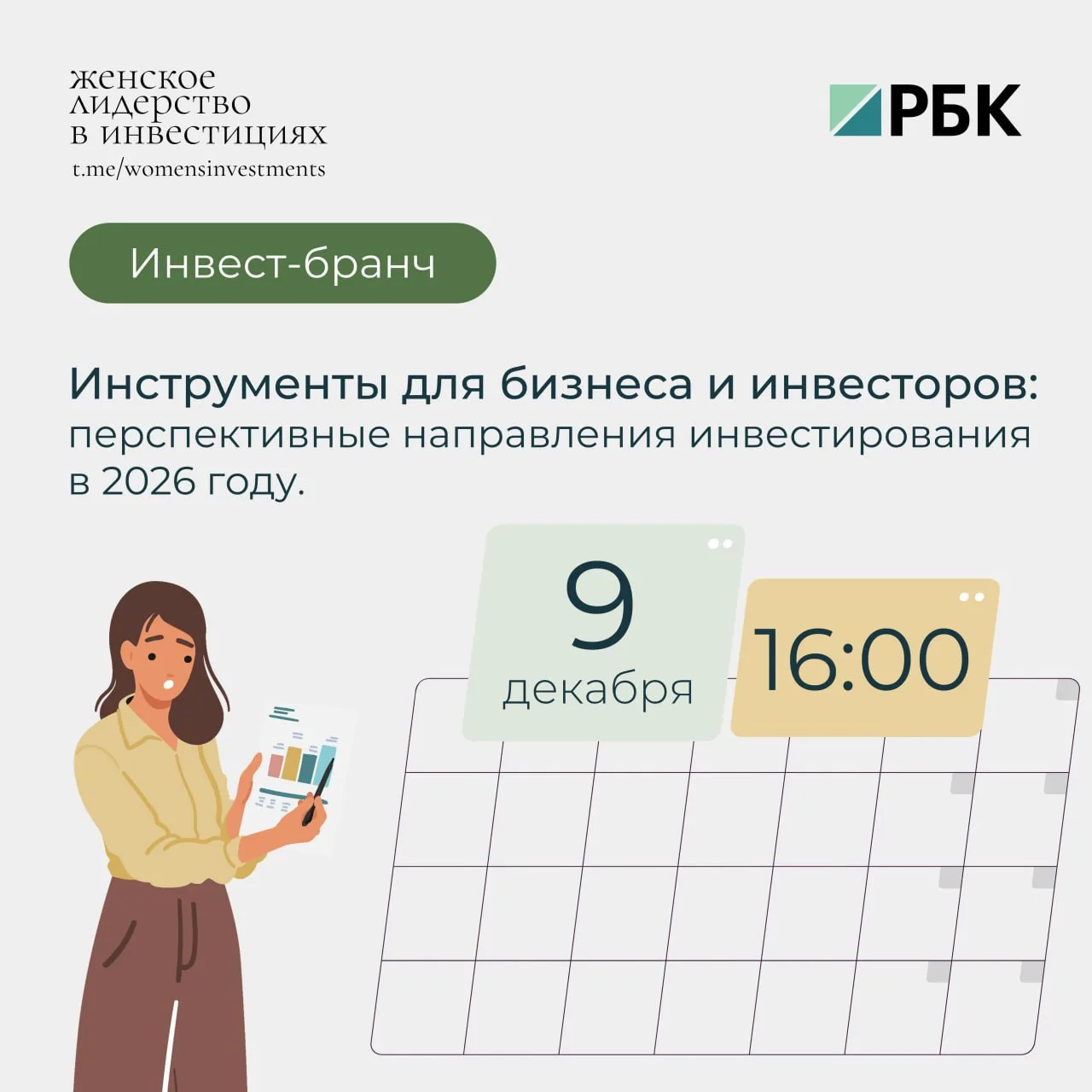 Под эгидой проекта ЕЖФ "Женское лидерство в инвестициях" совместно с РБК состоится инвестиционный бранч "Инструменты для бизнеса и инвесторов: перспективные направления инвестирования в 2026 году".