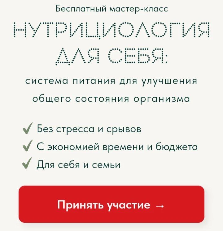 Ещё больше про взаимосвязь рациона и вашего состояния вы узнаете завтра на бесплатном вебинаре по нутрициологии.