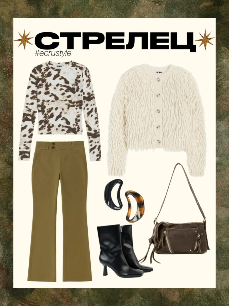Излучаем делулу-вайб в пушистом кардиганчике и лонгсливе с анималистичном принтом и бежим притягивать удачу в ботильонах с экстра-модным мысом✨