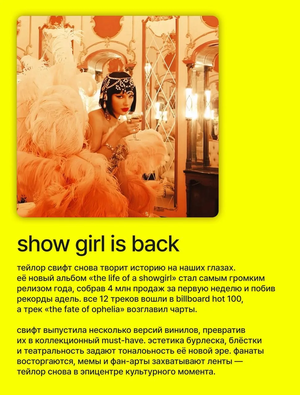 От возвращения той самой Кайли и бурлеск-эры Тейлор до маникюра с обвесом и «кольца власти»