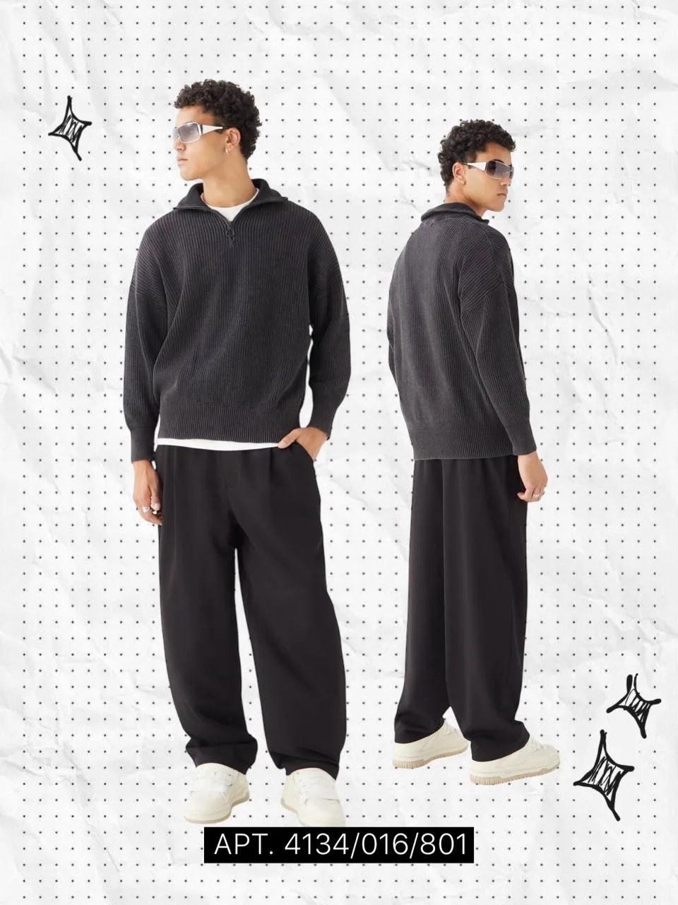 Зендая снова доказала, что базовые вещи решают всё: косуха, серый свитер, широкие брюки и уверенность в каждом шаге.