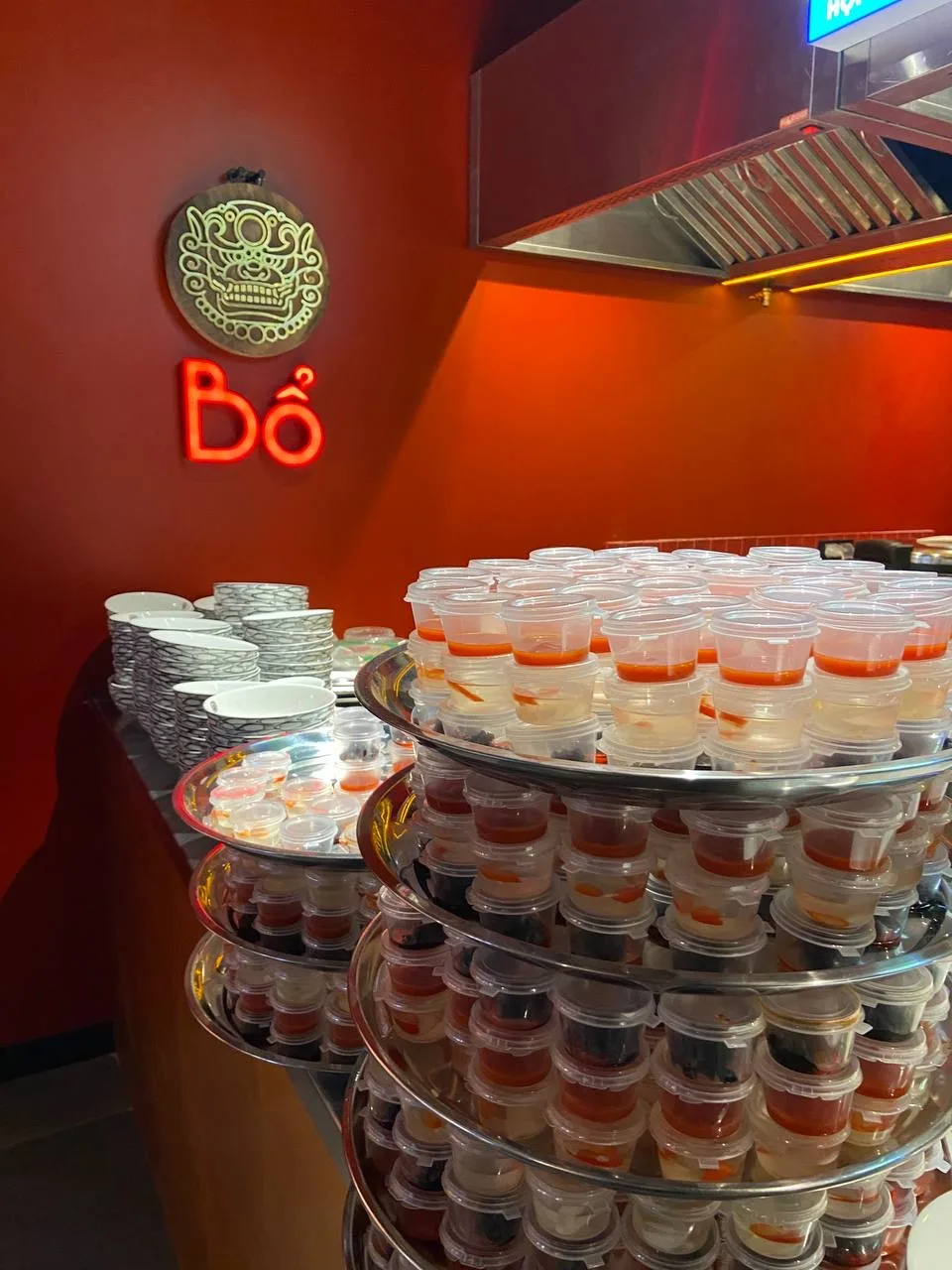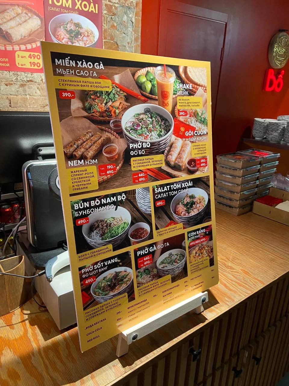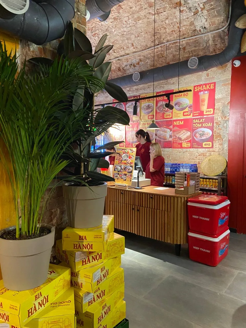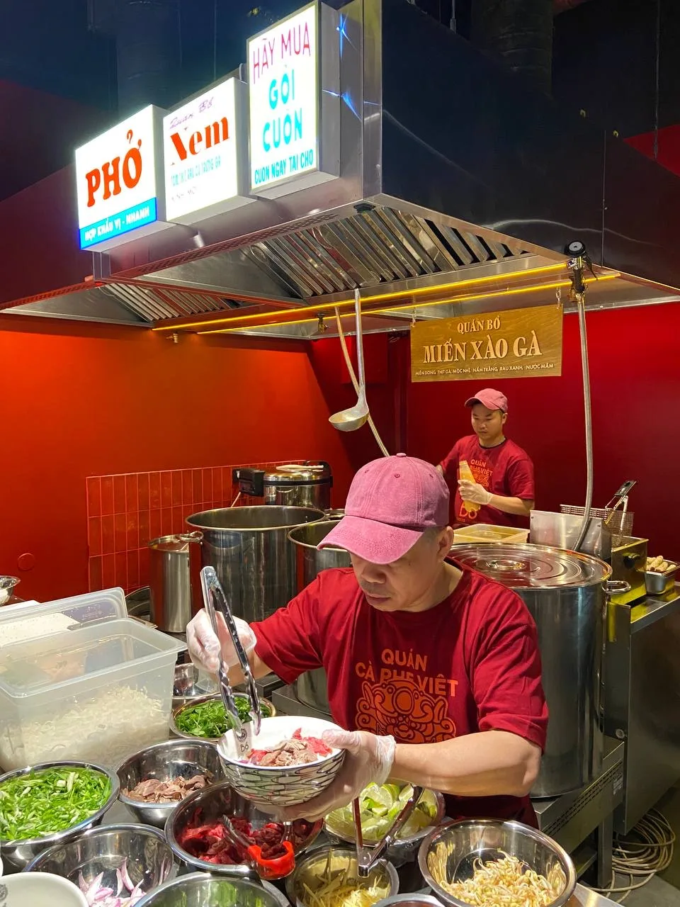 Команда вьетнамских поваров готовит национальный стритфуд из свежих ингредиентов на ваших глазах. За кухню отвечает вьетнамский шеф Чан Хак Туан Ань.
