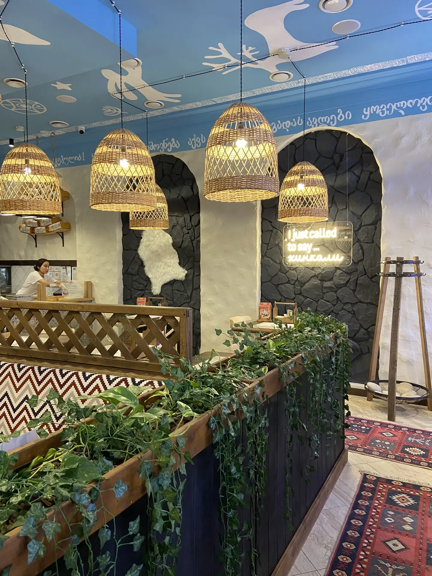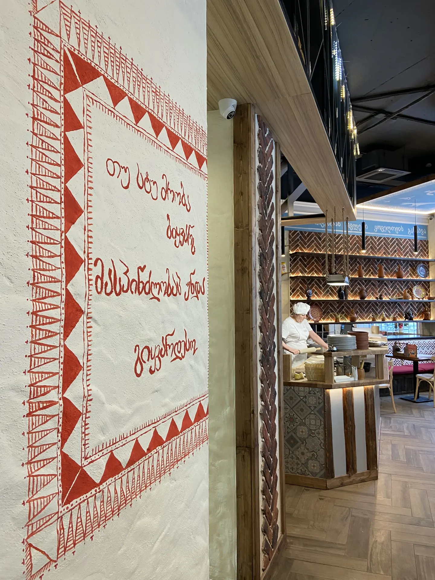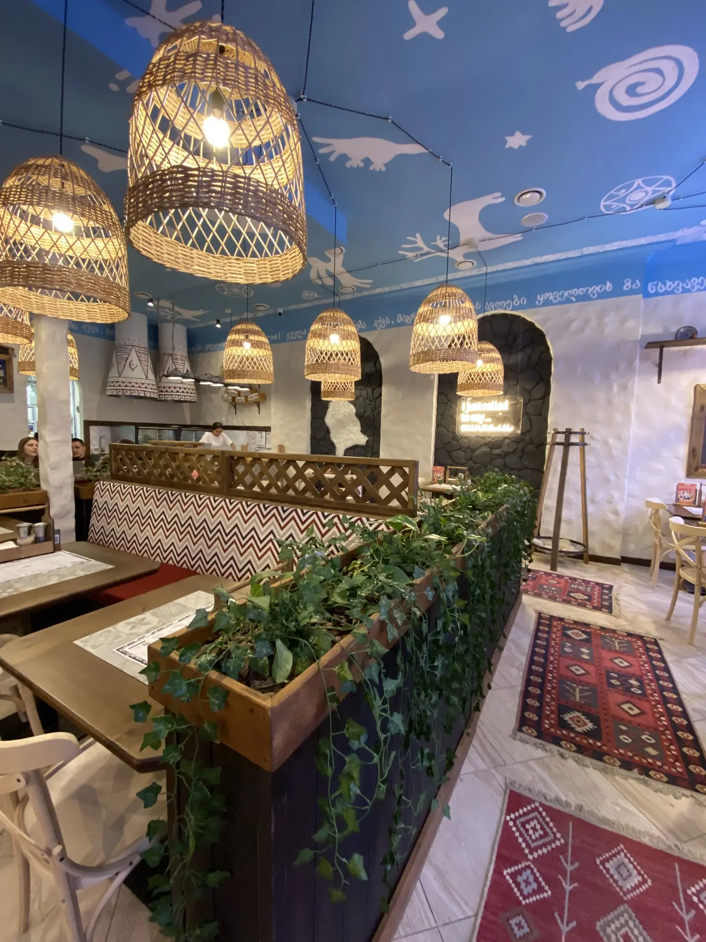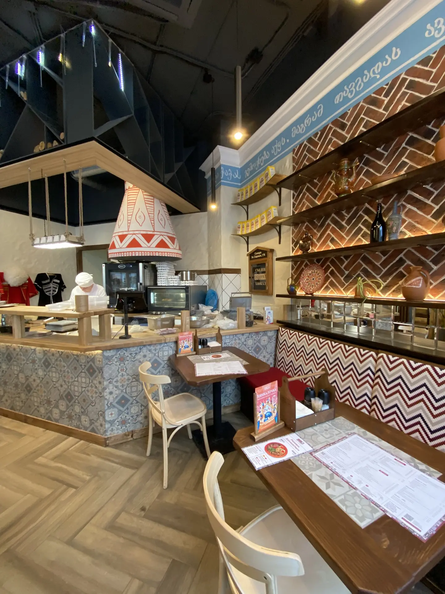 В меню русско-грузинского ресторана представлены домашние пельмени с мясом, укропом и говяжьим бульоном, а еще вареники с картофелем и белыми грибами.