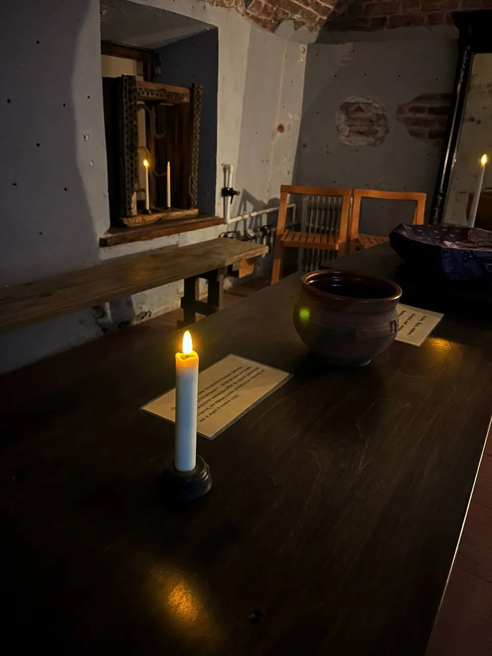 В центральном зале воссоздана сцена гуляния ряженых с этнографическим материалом из экспедиций. Здесь есть уникальная святочная деревянная маска «харя», а также другие костюмы, в которые переодевались молодые люди, чтобы пугать прохожих. В залах много предметов быта, а в подвале посетители могут погадать при свечах перед зеркалом и узнать, что ждет их в текущем году.