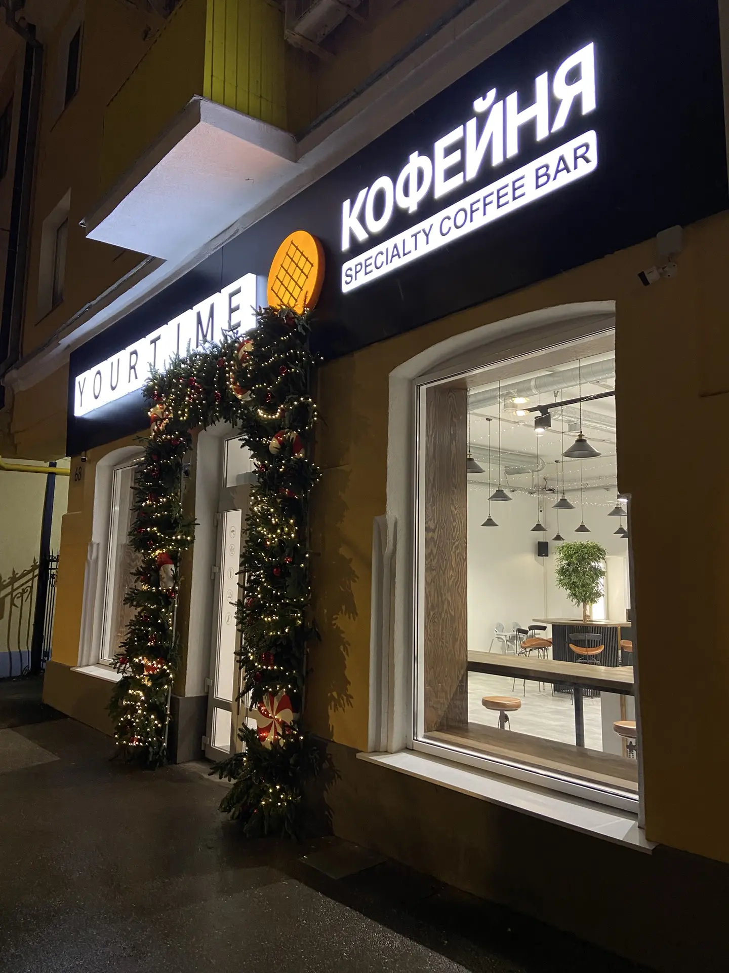 В историческом центре Самары открылась новая кофейня Your Time. Узнать ее легко по новогодней входной группе и крупным ярким буквам с названием заведения.