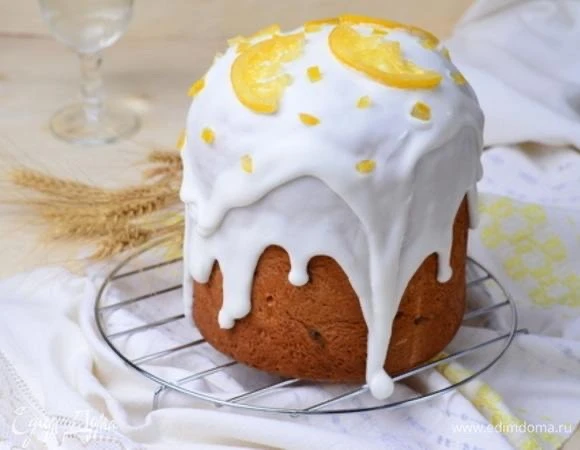 Остывший кулич покрыть глазурью. И украсить по вкусу.