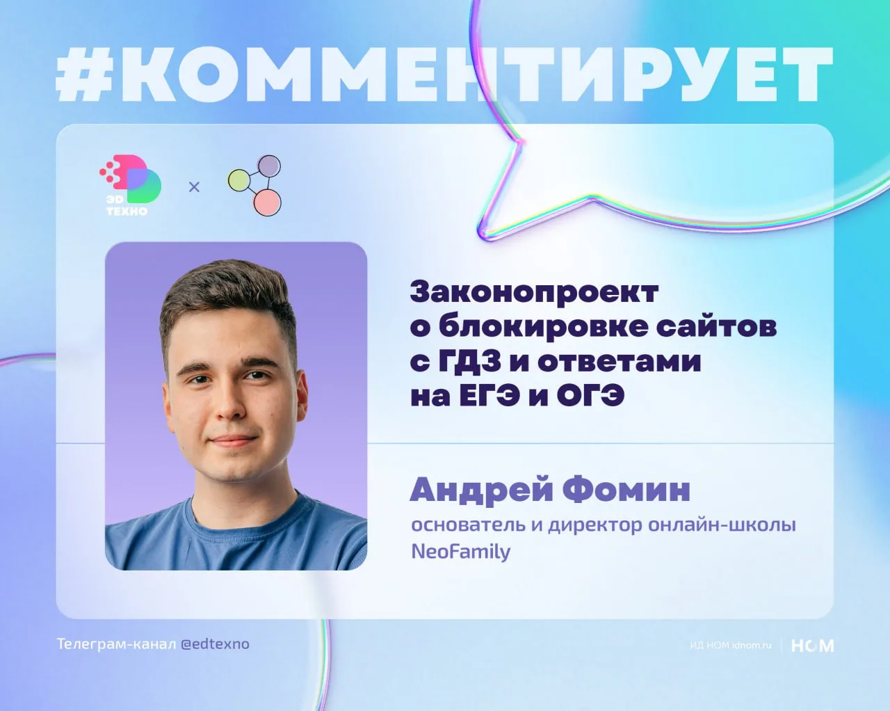 Инициативу Минпросвещения о запрете #комментирует основатель и директор онлайн-школы по подготовке к ЕГЭ Андрей Фомин.