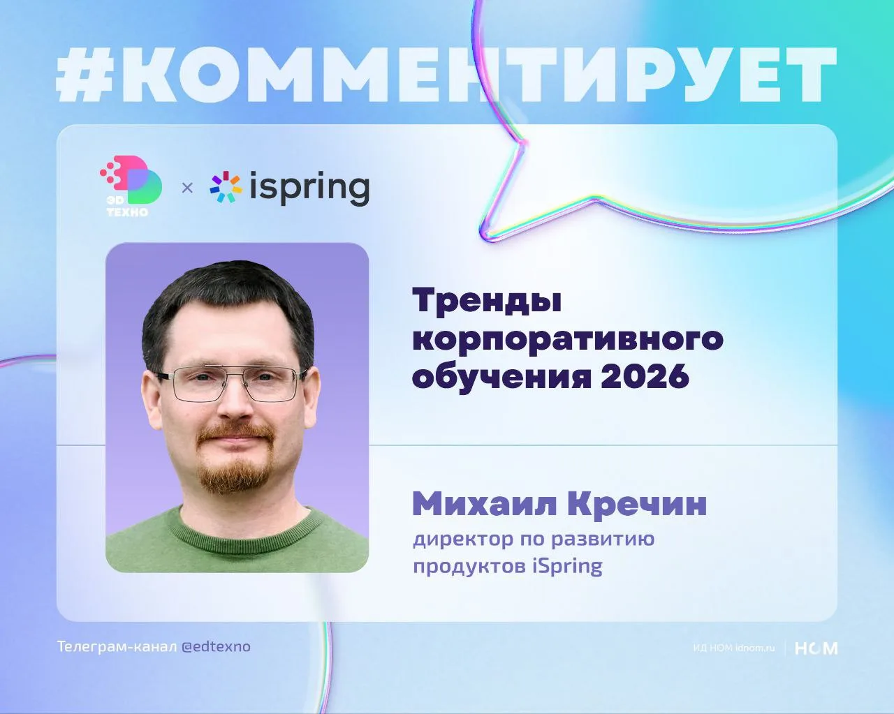 Эксклюзивно для "Эдтехно" директор по развитию продуктов iSpring Михаил Кречин #комментирует, что будет определять работу управленцев и HRD в 2026 году.