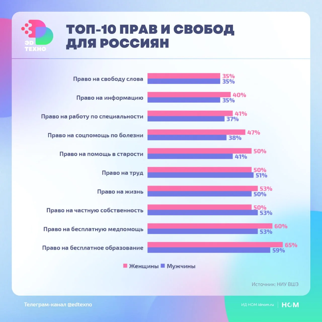 Бесплатное образование — самое главное право для россиян, показало мартовское исследование НИУ ВШЭ.