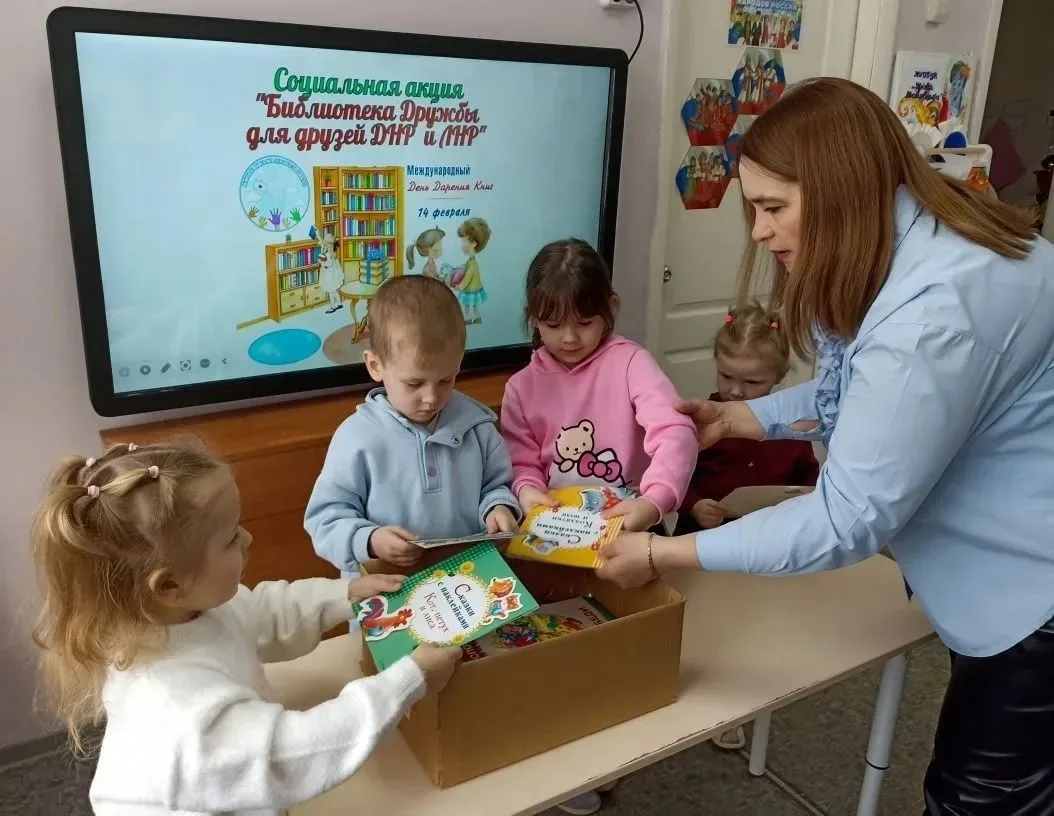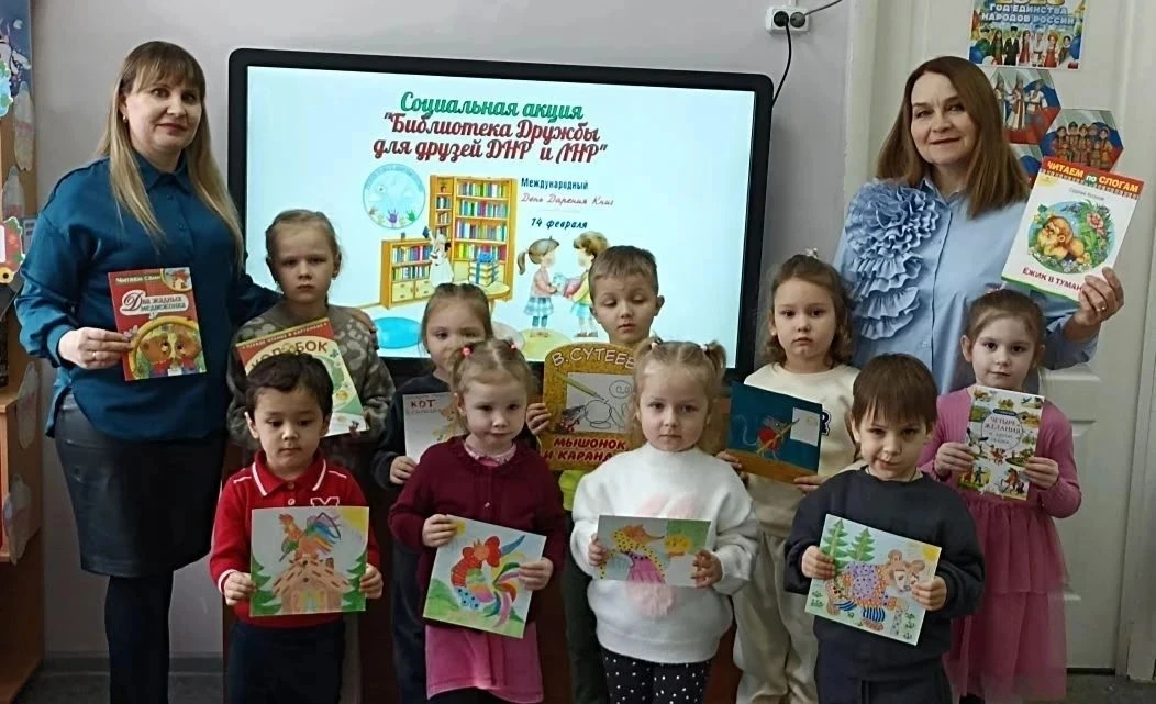 Педагоги из детского сада N11 г. Грязи вместе с родителями и воспитанниками приняли участие в акции "Библиотека Дружбы для друзей ДНР и ЛНР". Свои любимые книги ребята отправили в детский сад № 98 города Мариуполь ДНР. Также в подарок новым друзьям поехали иллюстрации к произведениям, нарисованные воспитанниками.