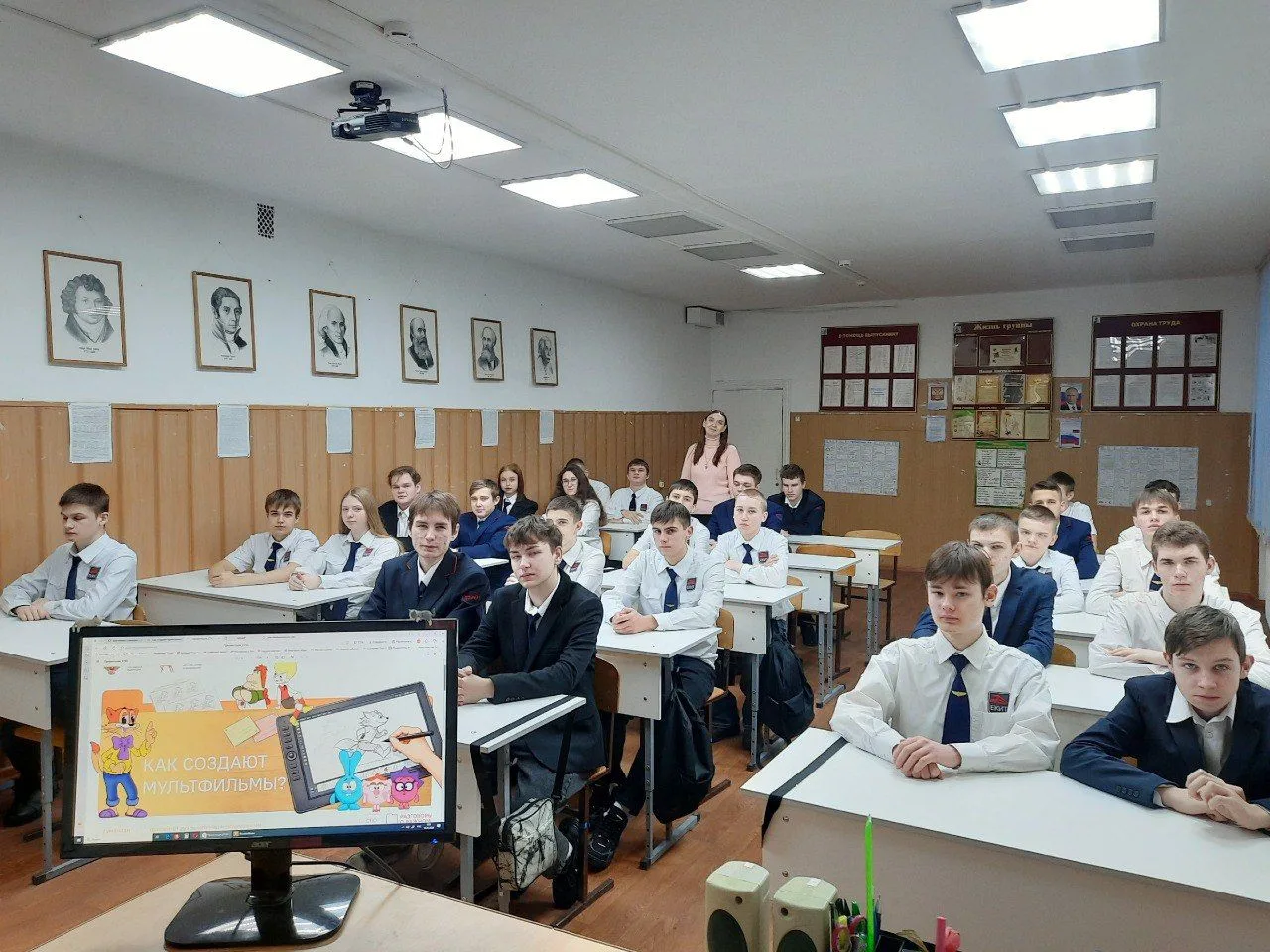 Ребята узнали о том, как рождаются идеи для сюжетов мультфильмов, какие этапы проходит сценарий перед началом производства, почему важна работа команды профессионалов разных специальностей и какова роль современных технологий в процессе анимации.