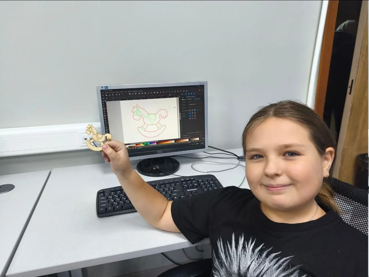 Школьники создали головоломки «Колумбово яйцо» и «Крест адмирала Макарова», спроектировали классический табурет и молоток в цифровом формате, оживили архитектурные формы вращения — от античных ваз до куполов соборов. Появились новогодние ёлочные игрушки-лошадки, вырезанные лазером, гибкие подвижные фигурки и даже детализированные шахматные фигуры. Не обошлось и без робототехники: шестиклассники собрали и запрограммировали рабочие модели светофоров.
