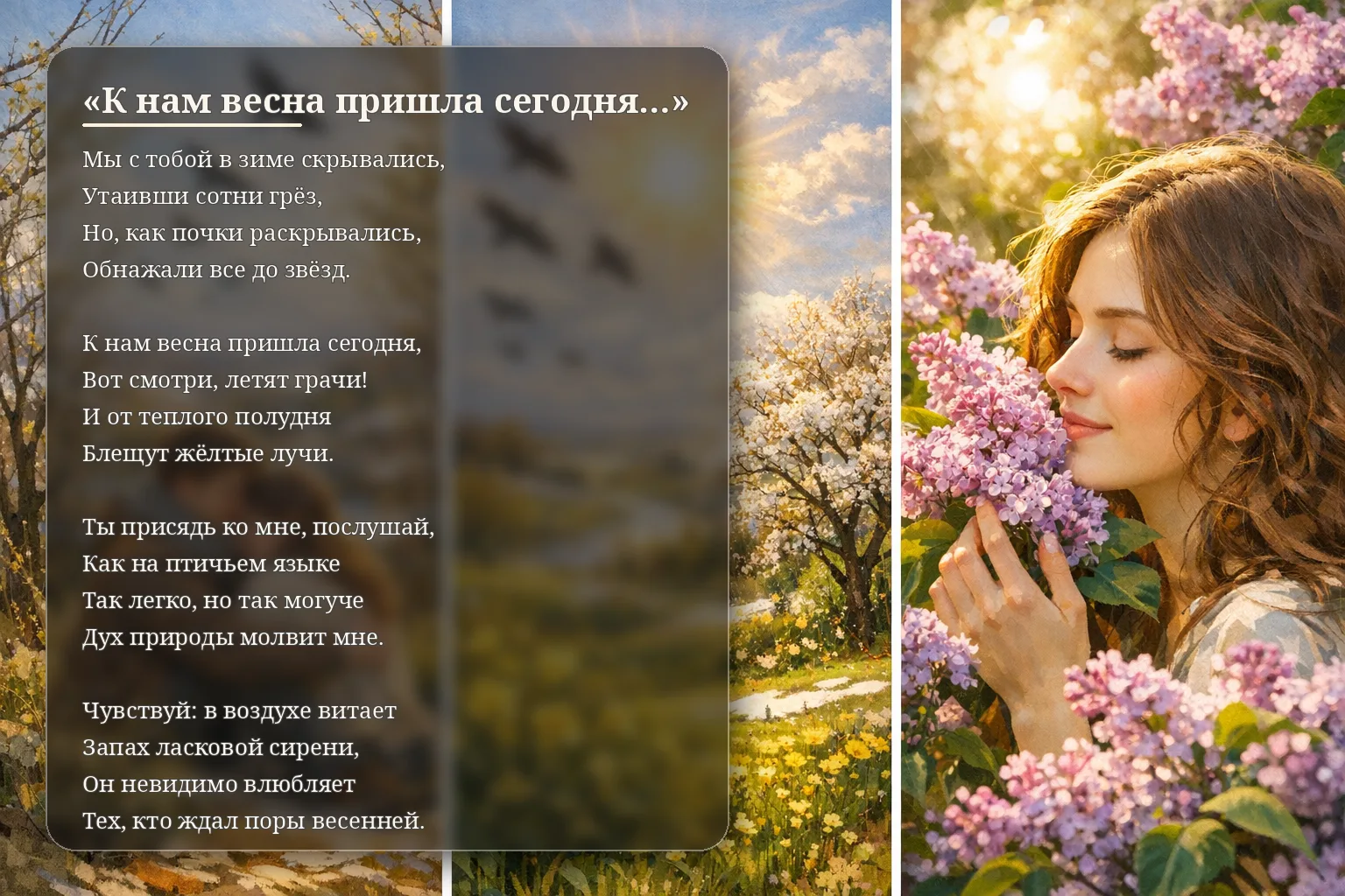 Сегодня, окрылённый весенней погодой, написал очередное стихотворение. Затем дал нейросети создать для него изображение.