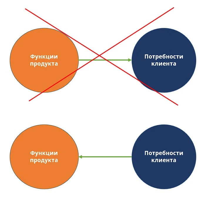 Менеджеры концентрируются исключительно на функциях продукта («это удобно для пользователей», а «это имеет высокую бизнес-гибкость» и так далее по списку),