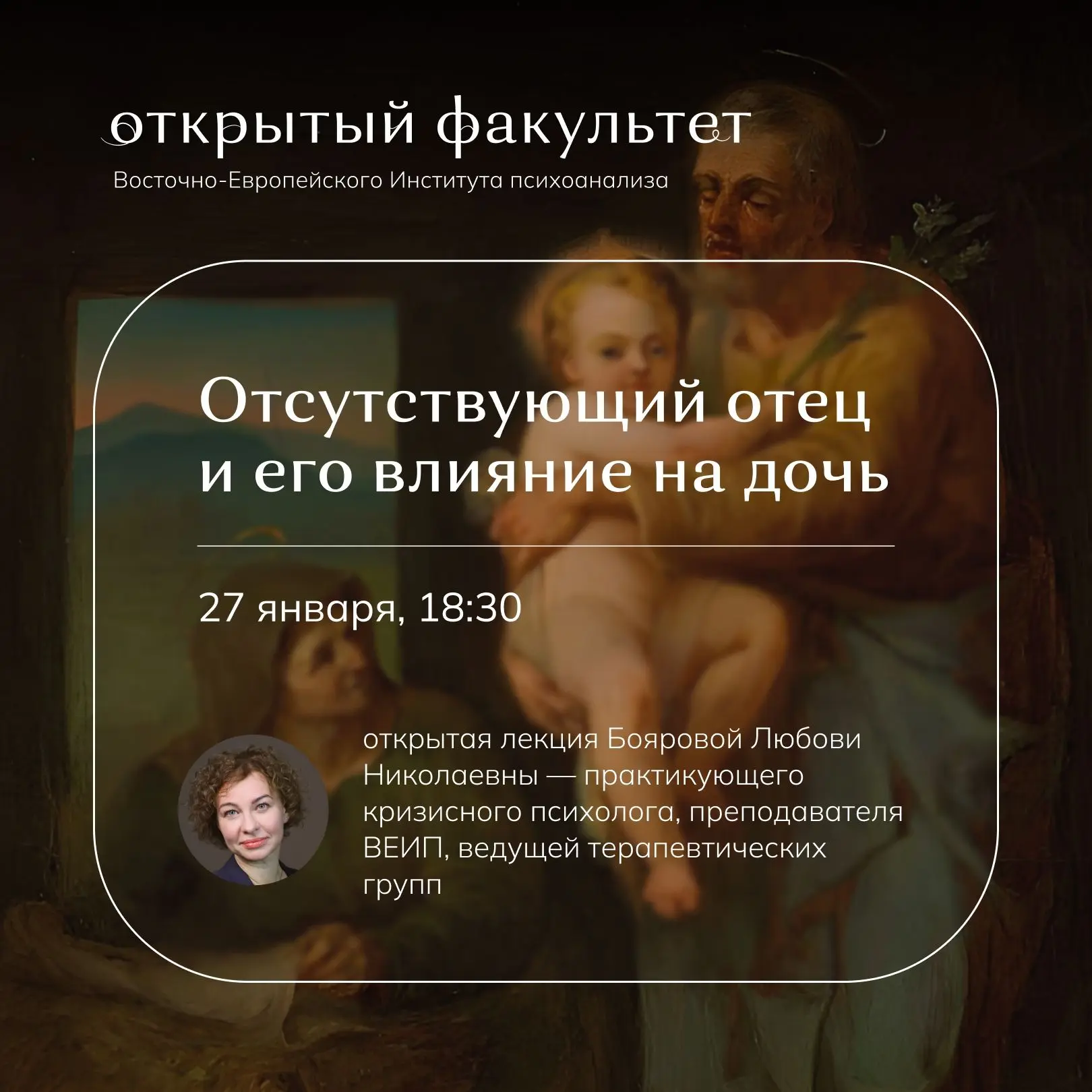 27 января 18:30 — «Отсутствующий отец и его влияние на дочь» с Любовью Николаевной Бояровой