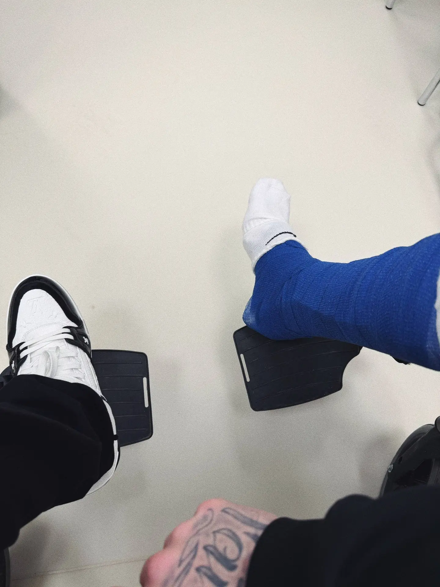 ИТОГ: порванное сухожилие спереди, порванное сухожилие сзади (разрыв связок), гипс и костыли 🥳👍🏼🩼