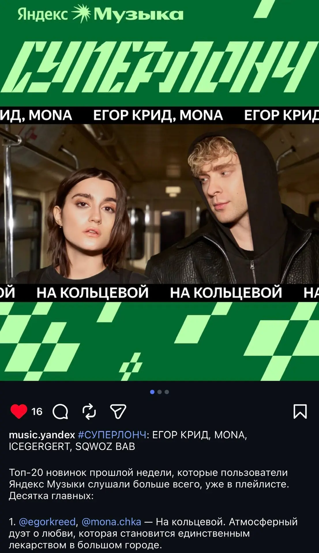Наш трек с Моной - «На кольцевой» на 1м месте по прослушиваниям среди всех новинок прошлой недели на ЯМ !