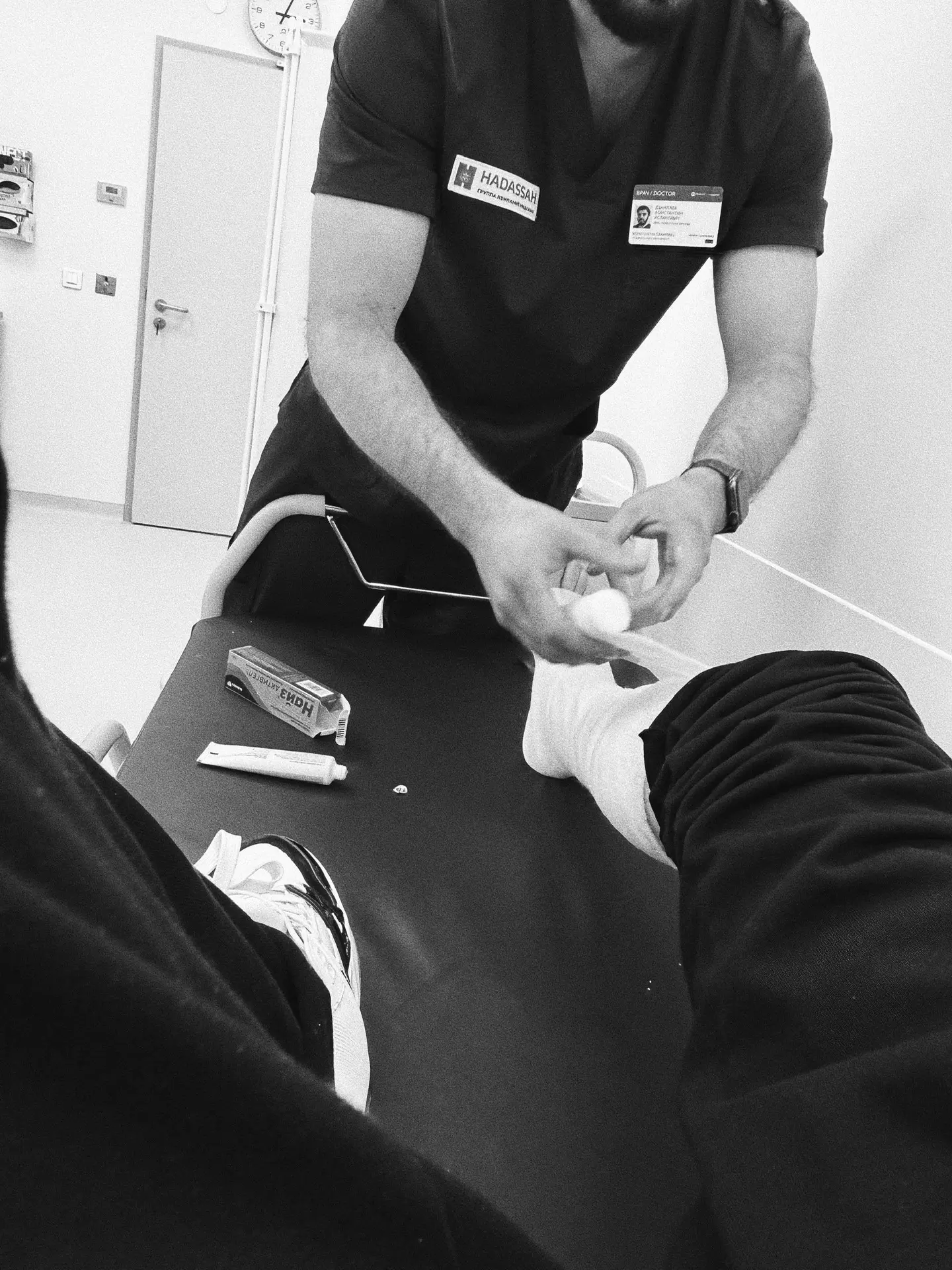 Встал, приложил лёд и перед вылетом поехал в местный травмпункт на рентген. Кости глянули - все на месте, и я на радостях похромал в аэропорт! Помазал ногу, надел компрессионные носки и включил сериальчик ✈️